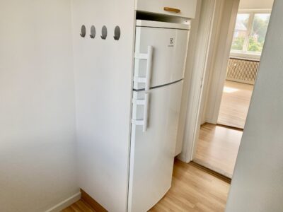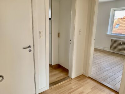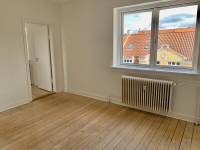 Lejligheden er indrettet med to separate værelser og en stue imellem dem. Denne layout gør det ideelt til deling, da det giver privatliv for hvert værelse samtidig med en central stue til fælles ophold. Et af værelserne giver adgang til en hyggelig altan, der er det perfekte sted at nyde morgenkaffen eller en stille stund.