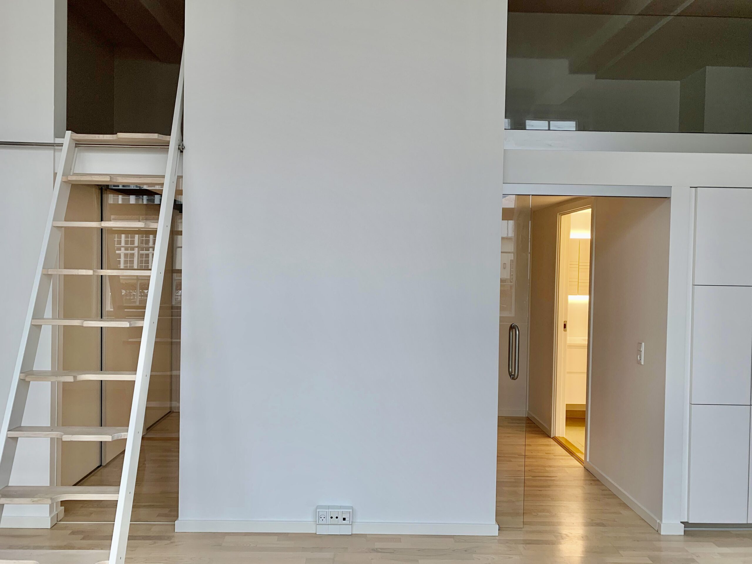 Dejlig stor hems over soveværelse og badeværelse. Hemsens højde er cirka 135 cm, og kan for eksempel bruges til kontor, gæsteværelse, opbevaring, soveværelse mv.