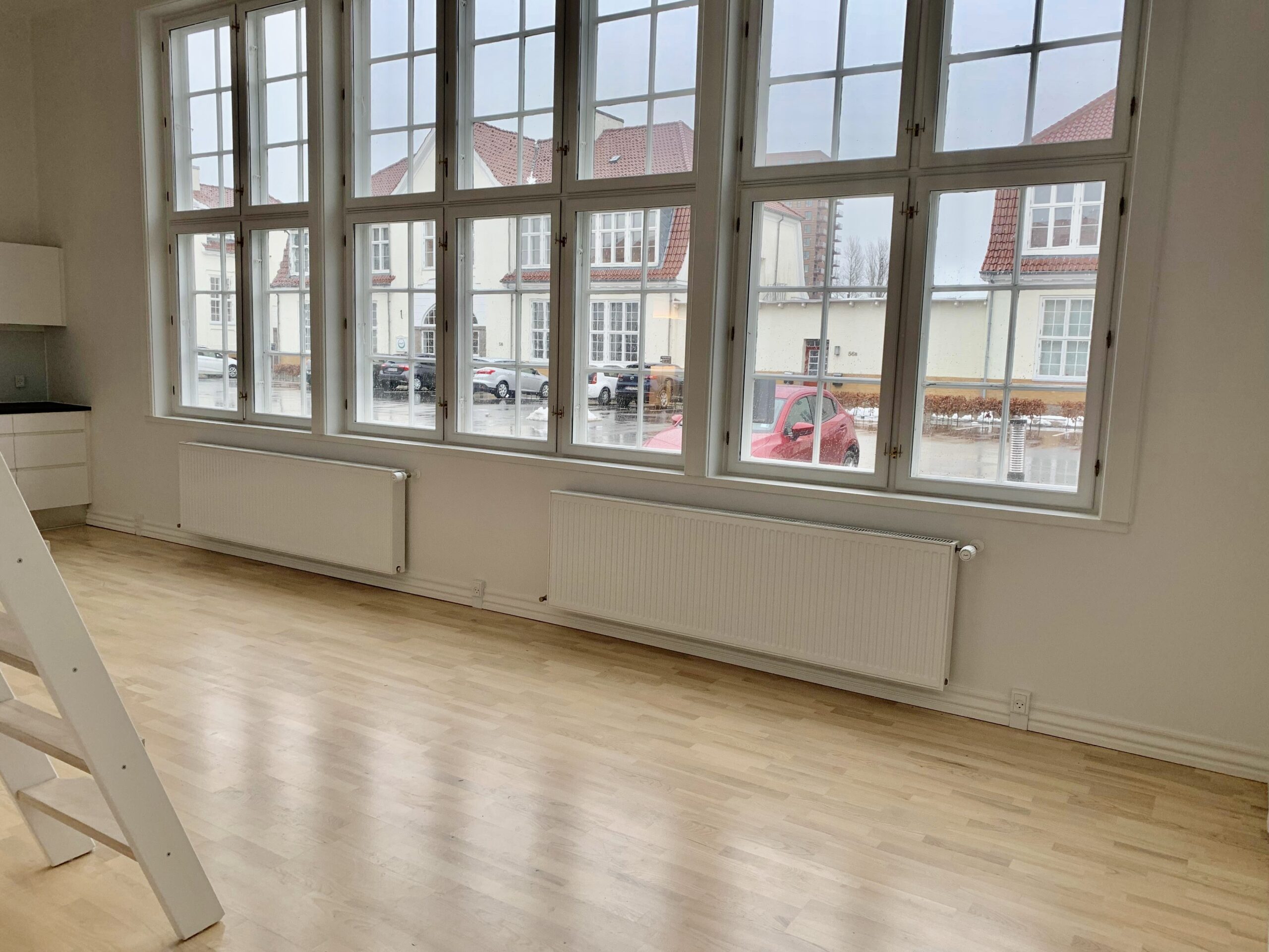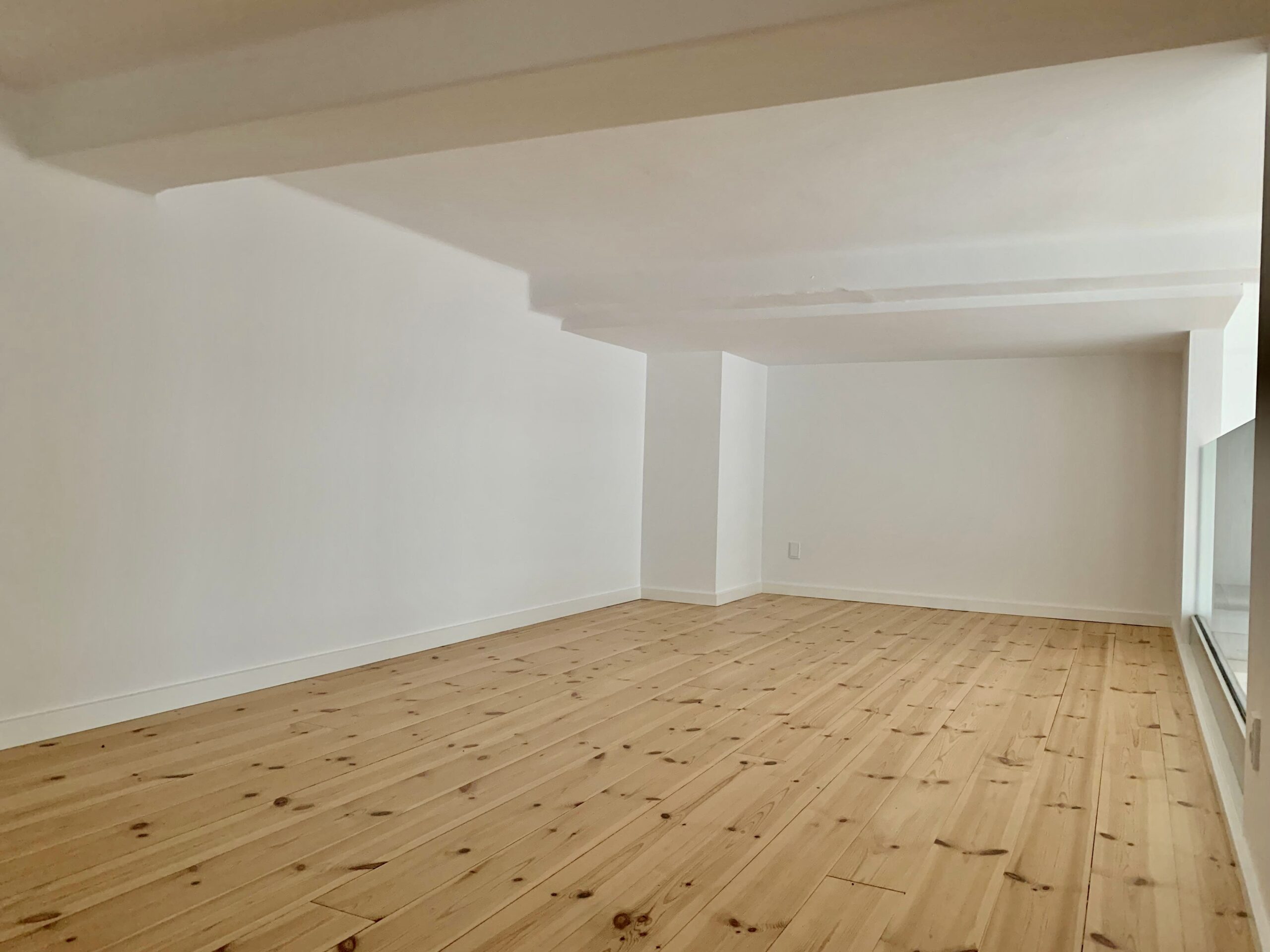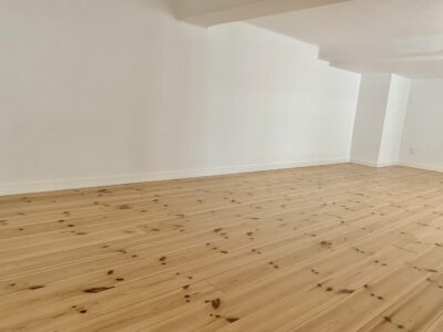 Lyst trægulv i hele lejligheden.