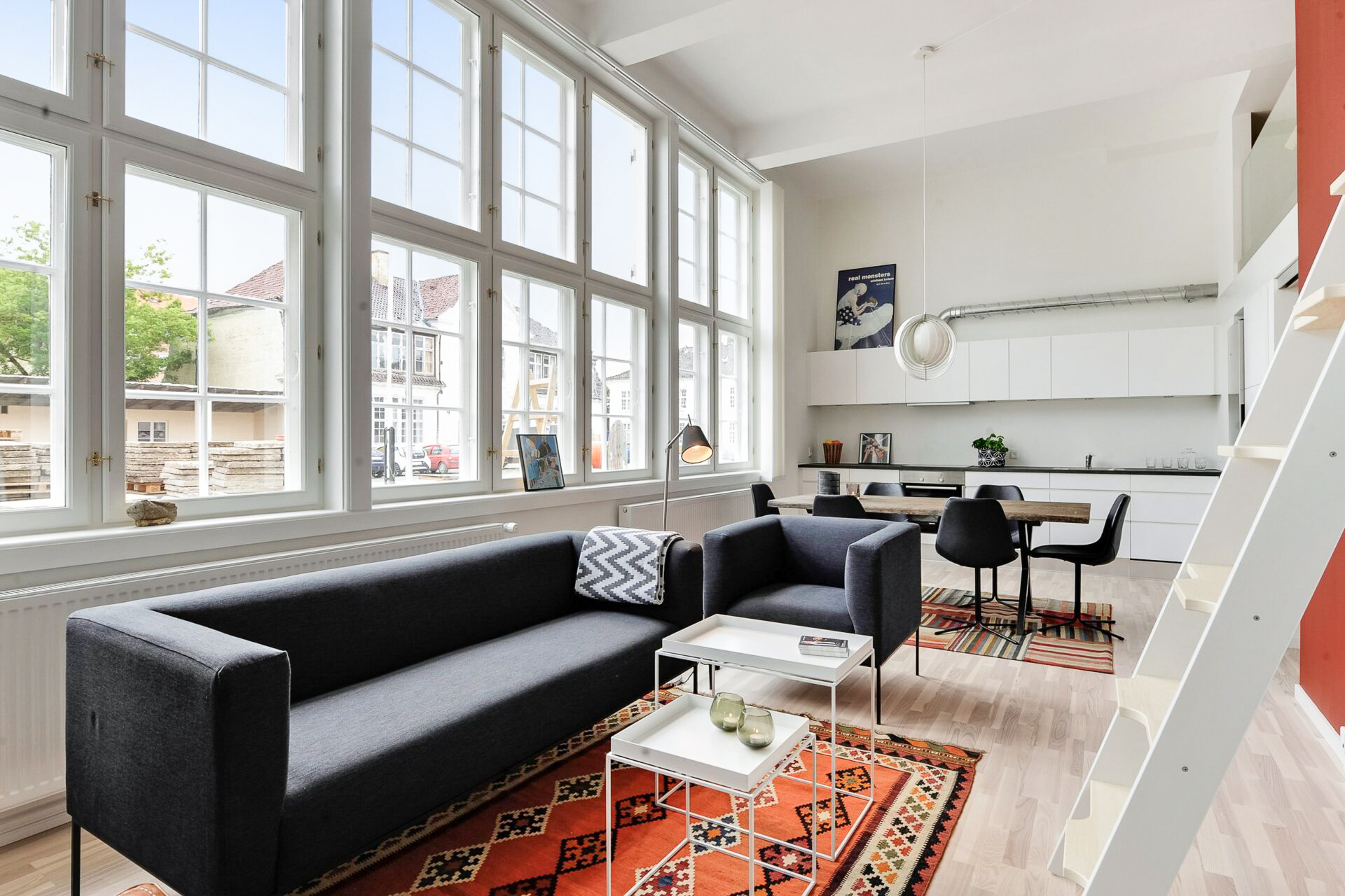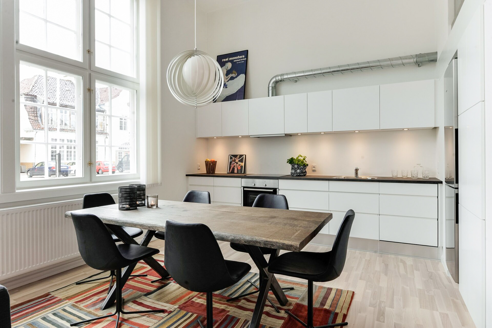 Dejligt åbent køkken/alrum med flot lysindfald.