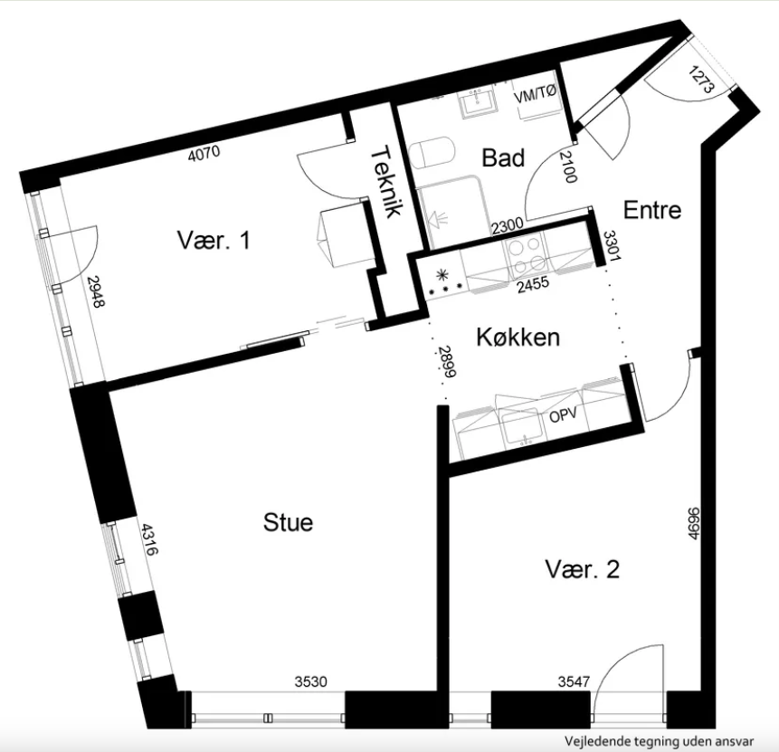 Lejligheden er velindrettet med indbydende rum og godt lysindfald. Den byder på en entré, køkken, stue, to værelser og et badeværelse. Lejligheden er indrettet i neutrale materialer, som giver dig mulighed for at skabe dit helt eget personlige hjem.