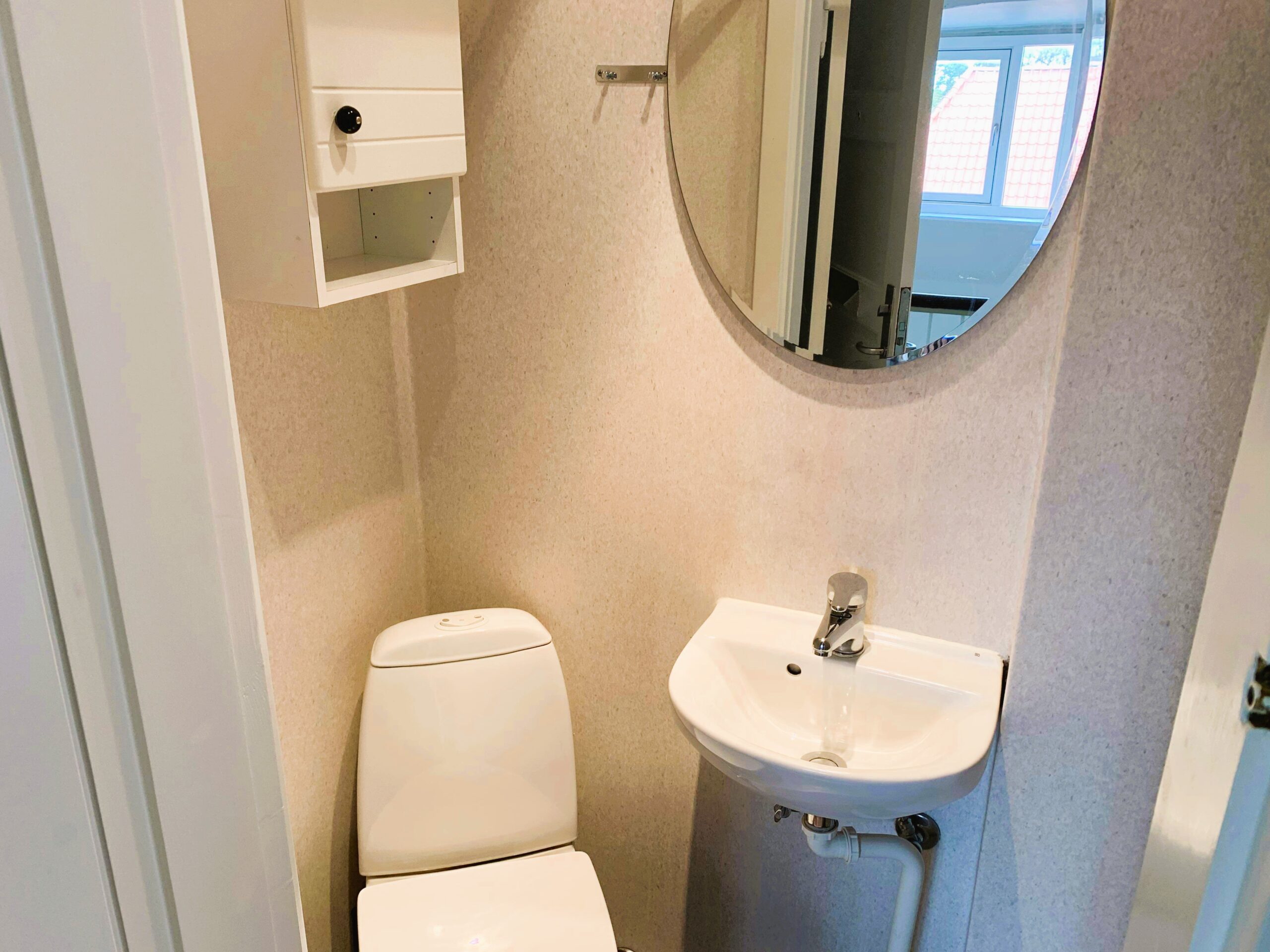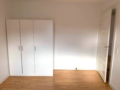 Soveværelset er indrettet med et nyt klædeskab, der tilbyder rigelig opbevaringsplads til dine ejendele. Det giver en organiseret og ryddelig atmosfære, så du kan holde dit soveværelse pænt og ordentligt.