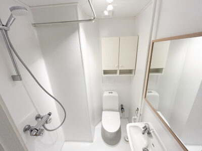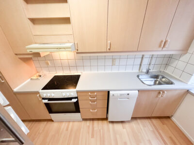 Soveværelset er rummeligt og vender mod den rolige gård, hvilket skaber gode betingelser for en god nats søvn. Køkkenet er ældre men pænt og velholdt, og det er udstyret med næsten nyt komfur, emhætte, køle/frys samt opvaskemaskine. Her får du masser af bord- og skabsplads, og fra køkkenet er der desuden adgang til bagtrappe, depotrum og et pænt brugerbetalt vaskeri i kælderen. Badeværelset har en fin bruseplads og fremstår lyst og funktionelt.