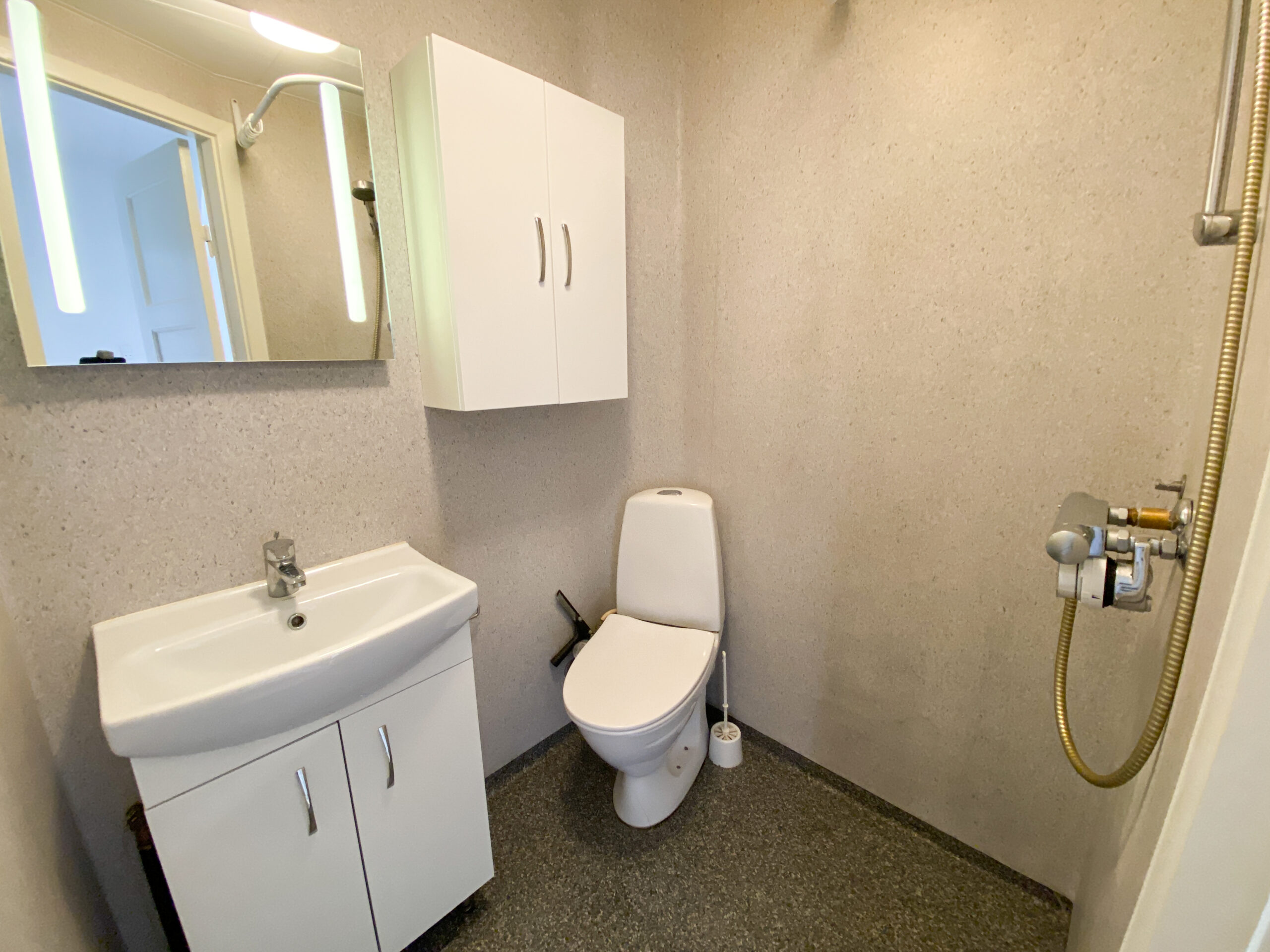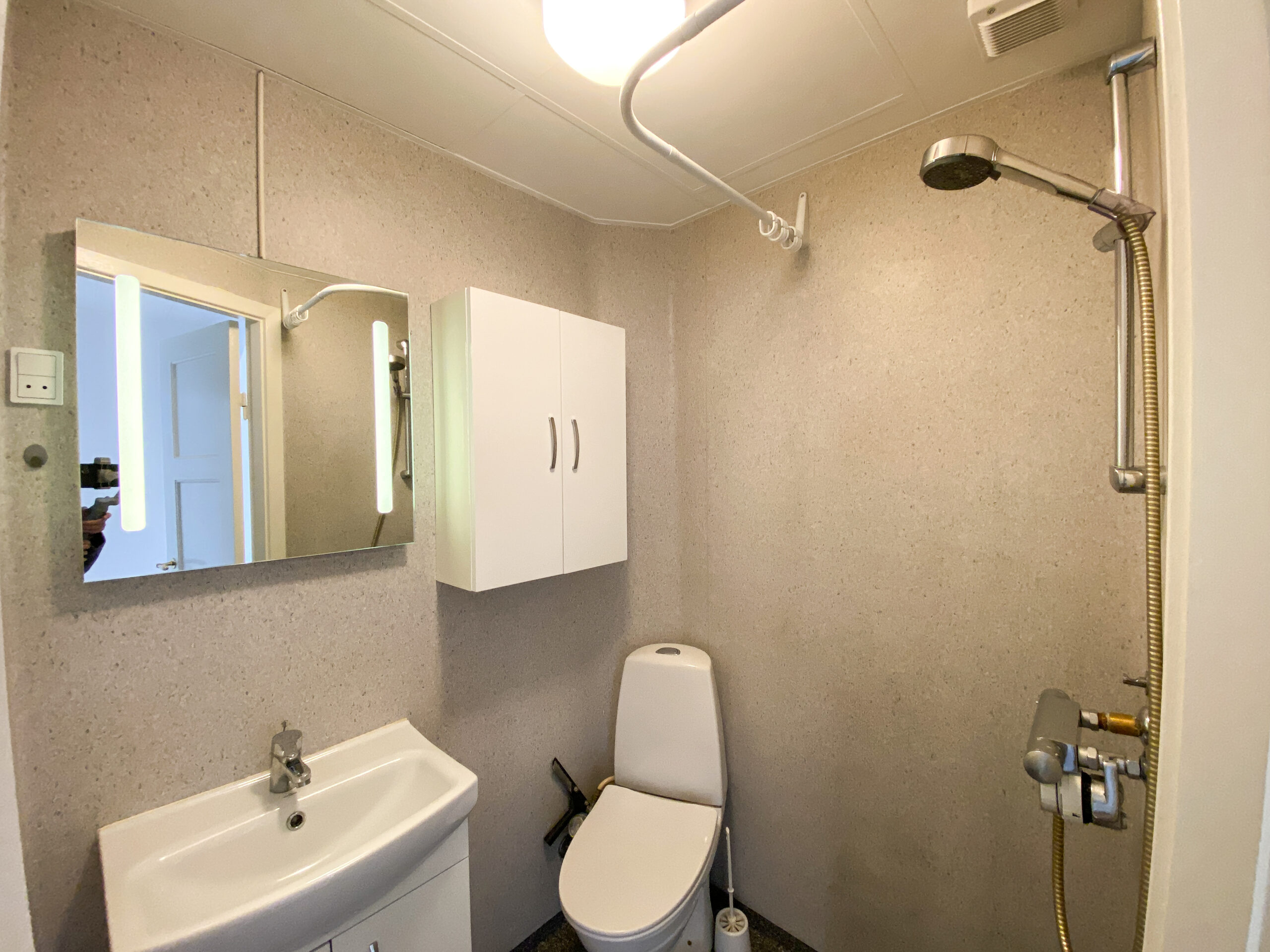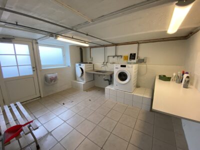 Boligen har nyere vinduer og pæne laminatgulve gennem hele lejligheden, hvilket giver et lyst og indbydende indtryk. Der medfølger desuden et opbevaringsrum i kælderen, og ejendommen har et fælles, brugerbetalt vaskeri til rådighed for beboerne.