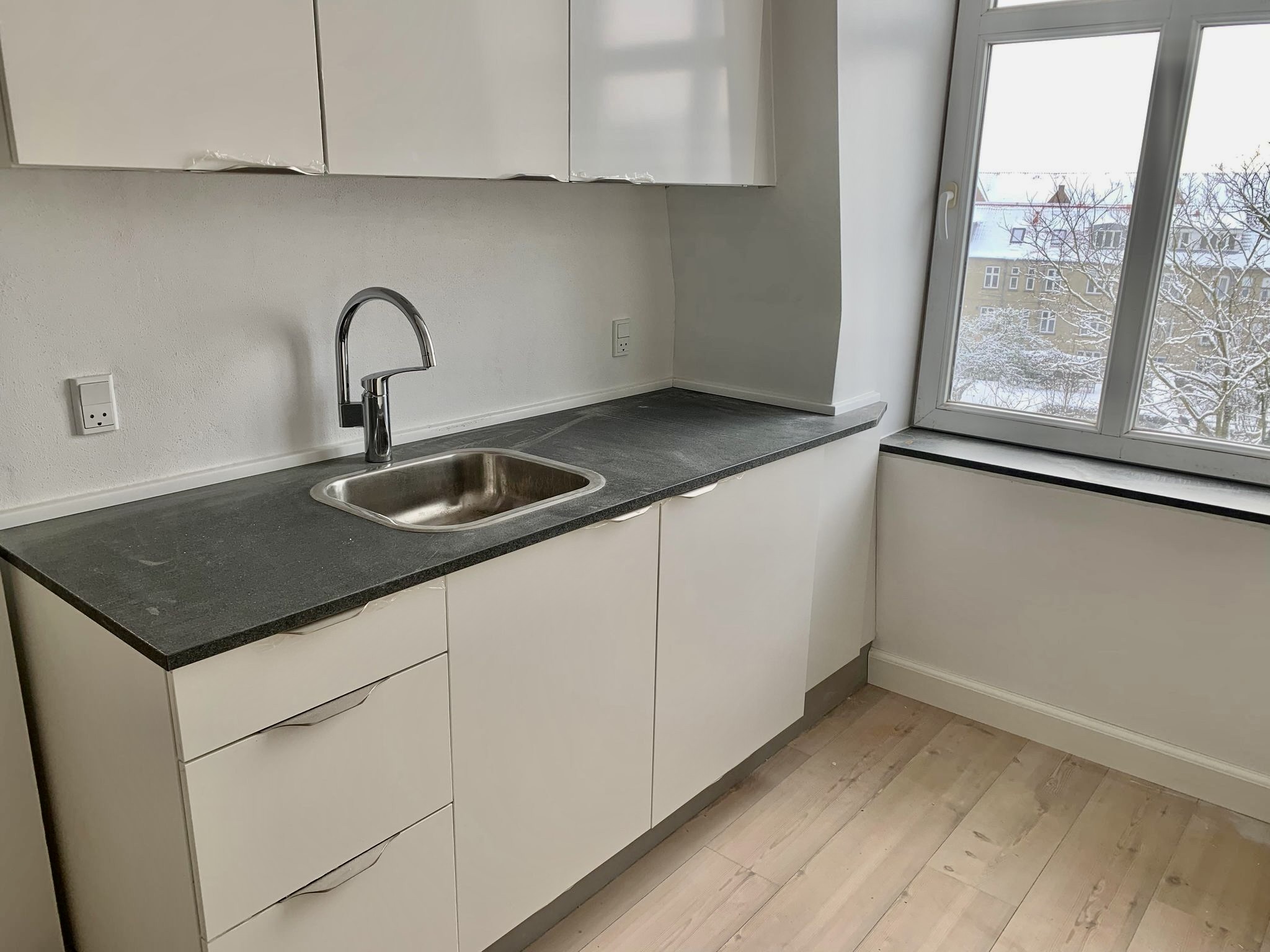 Man er altså første person til at bo i denne lejlighed, som altså fremstår som helt ny. Meget hyggelig lejlighed.