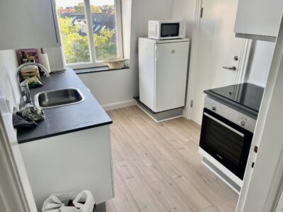 Denne lejlighed er dejlig rummelig, og har helt nyt køkken og bad.