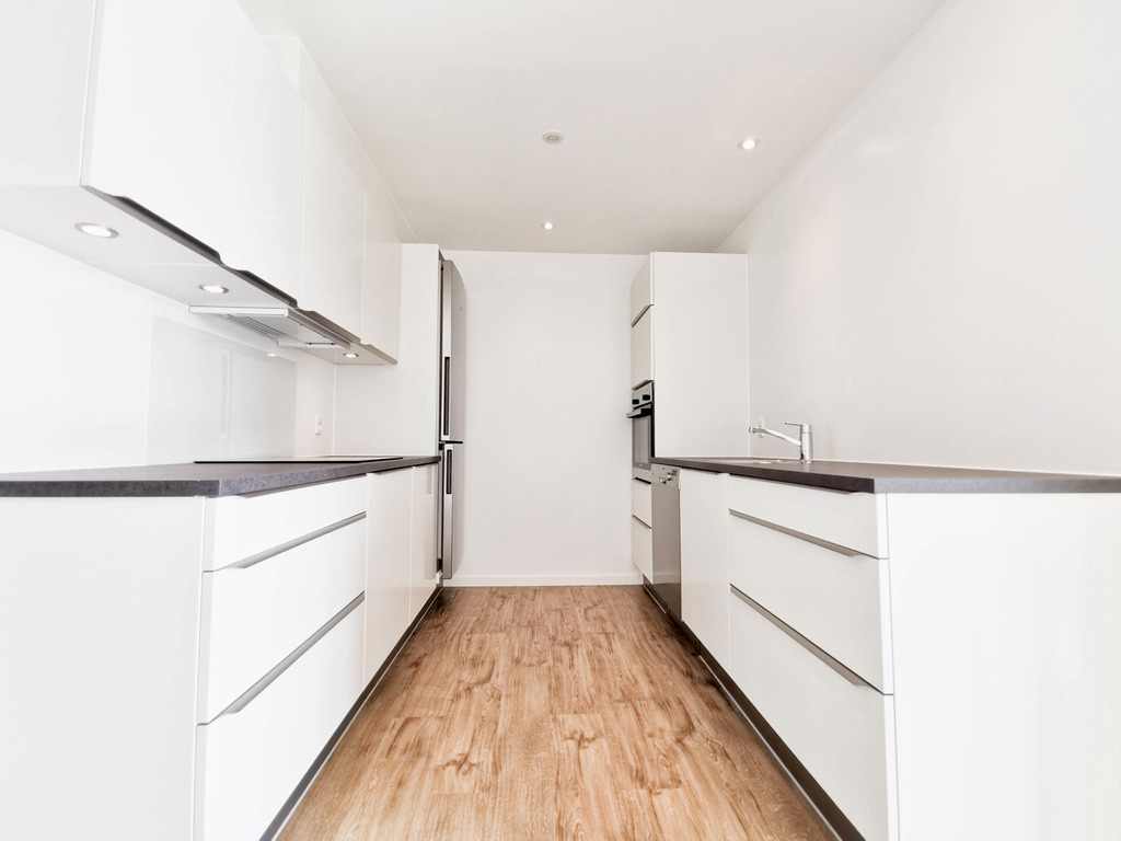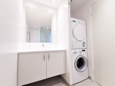 Boligen er indrettet med et stilrent og moderne køkken fra HTH, som ligger i åben forbindelse med opholdsrummet og skaber et lyst og indbydende hjerterum. Køkkenet er udstyret med alle nødvendige hårde hvidevarer, og der er god plads til både madlavning og samvær. Badeværelset er rummeligt og elegant, med fliser på gulvet og i brusenichen, og er udstyret med vask med underskab, spejl, håndklædetørrer samt både vaskemaskine og tørretumbler, så du har alle bekvemmeligheder samlet ét sted. I soveværelset finder du gode opbevaringsmuligheder i form af faste skabe.