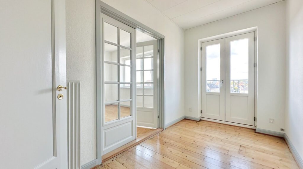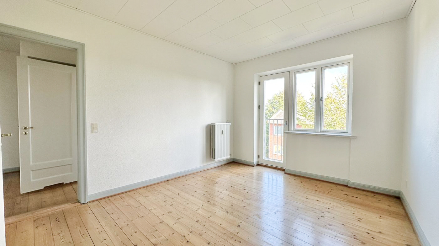 Stuen er lys og indbydende, hvilket skaber et hyggeligt samlingspunkt. Det store soveværelse giver god plads til indretning, mens det praktiske børneværelse eller kontor tilbyder fleksible muligheder tilpasset dine behov.
