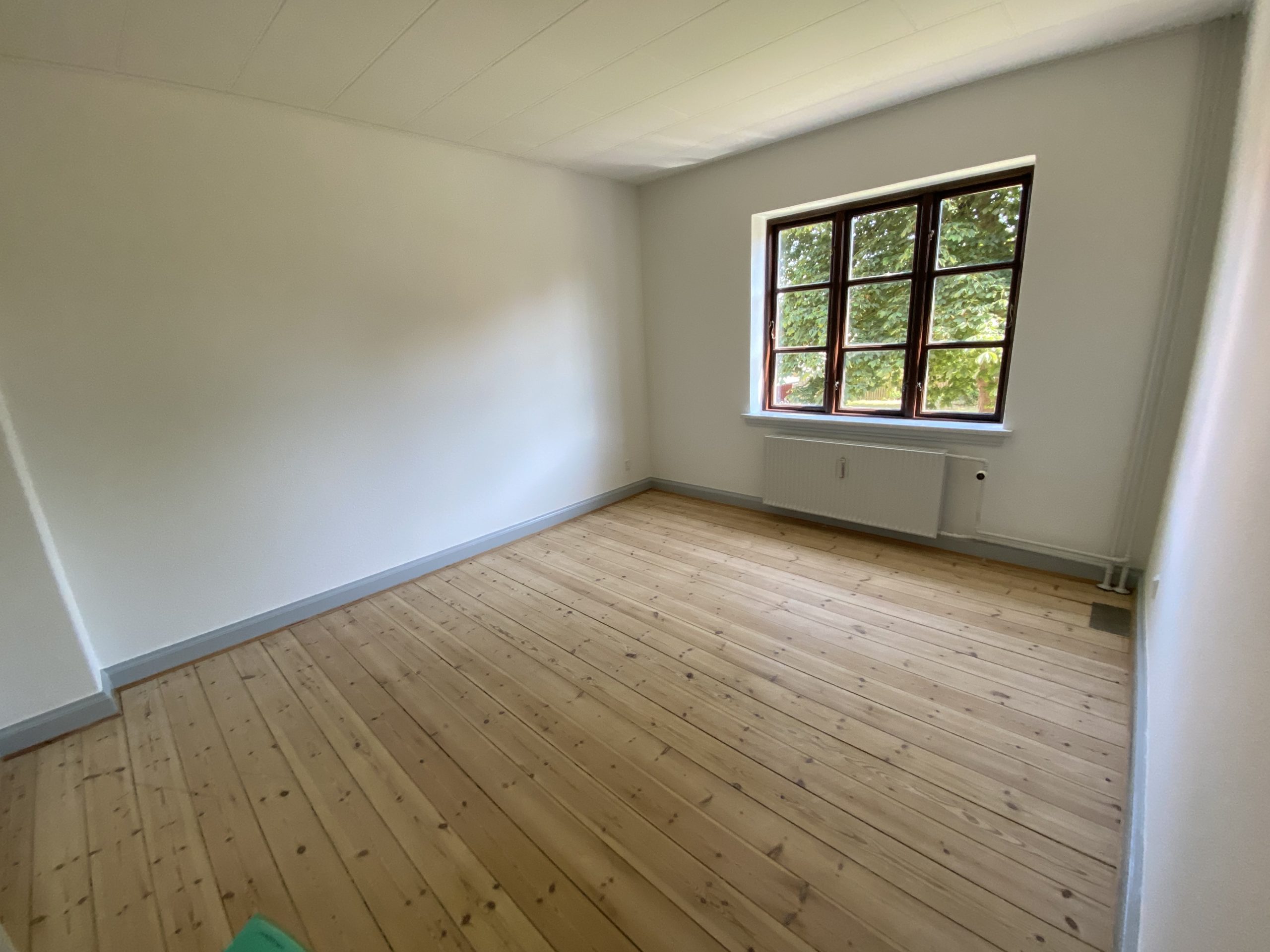 Lejligheden byder på en stor, lys stue, der inviterer til hyggelige stunder. Det gode soveværelse giver plads til ro og afslapning, mens det pæne badeværelse med brus og det funktionelle køkken med hvidevarer fuldender hjemmet. De flotte afhøvlede gulve tilføjer en varm og indbydende stemning i hele boligen.