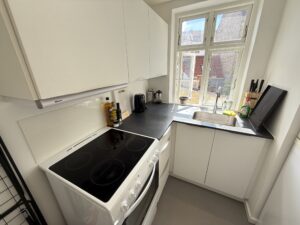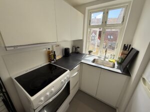 Lejligheden ligger i hjertet af byen, hvilket betyder, at caféer, restauranter og butikker er lige rundt om hjørnet. Den centrale placering gør det også nemt at komme rundt, uanset om du skal på arbejde eller ud for at udforske byens mange tilbud.