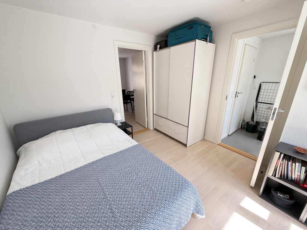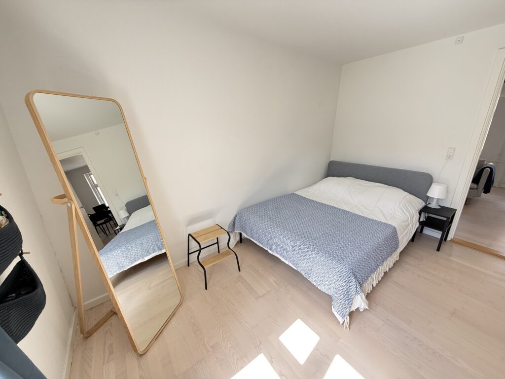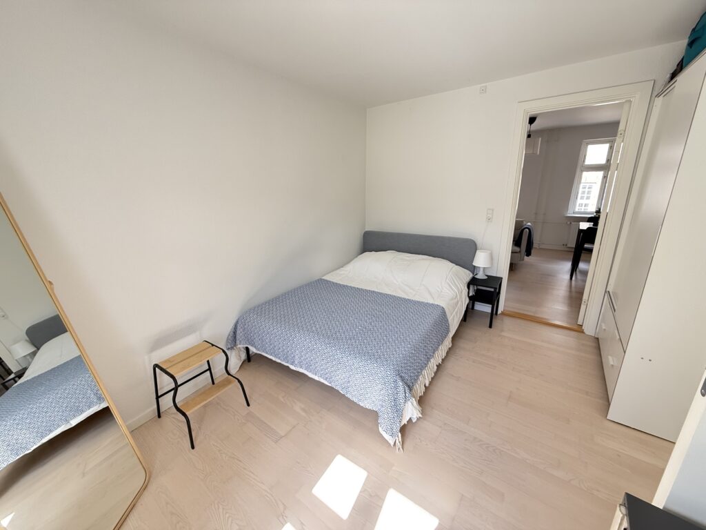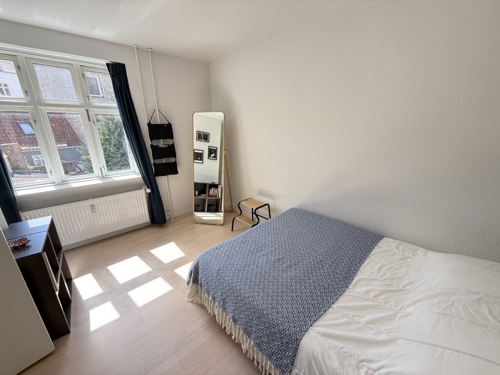 Lejlighedens to værelser er rummelige og lyse, ideelle til soveværelse og stue.