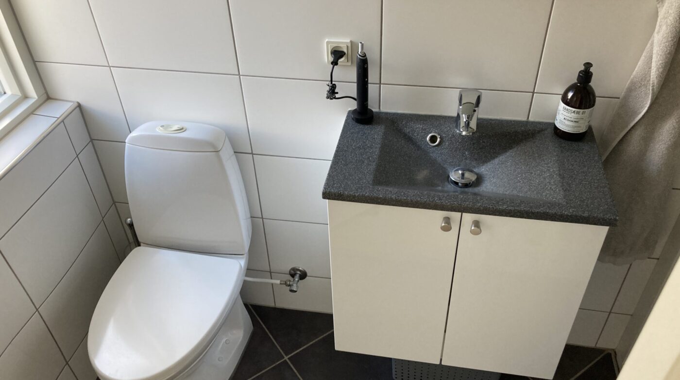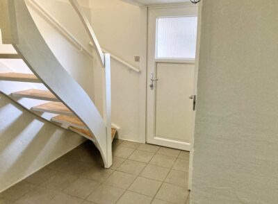 I stueplan er der badeværelse med brus. Flot køkken med alt i hårde hvidevarer, herunder opvaskemaskine. Lys stue med udgang til egen have.