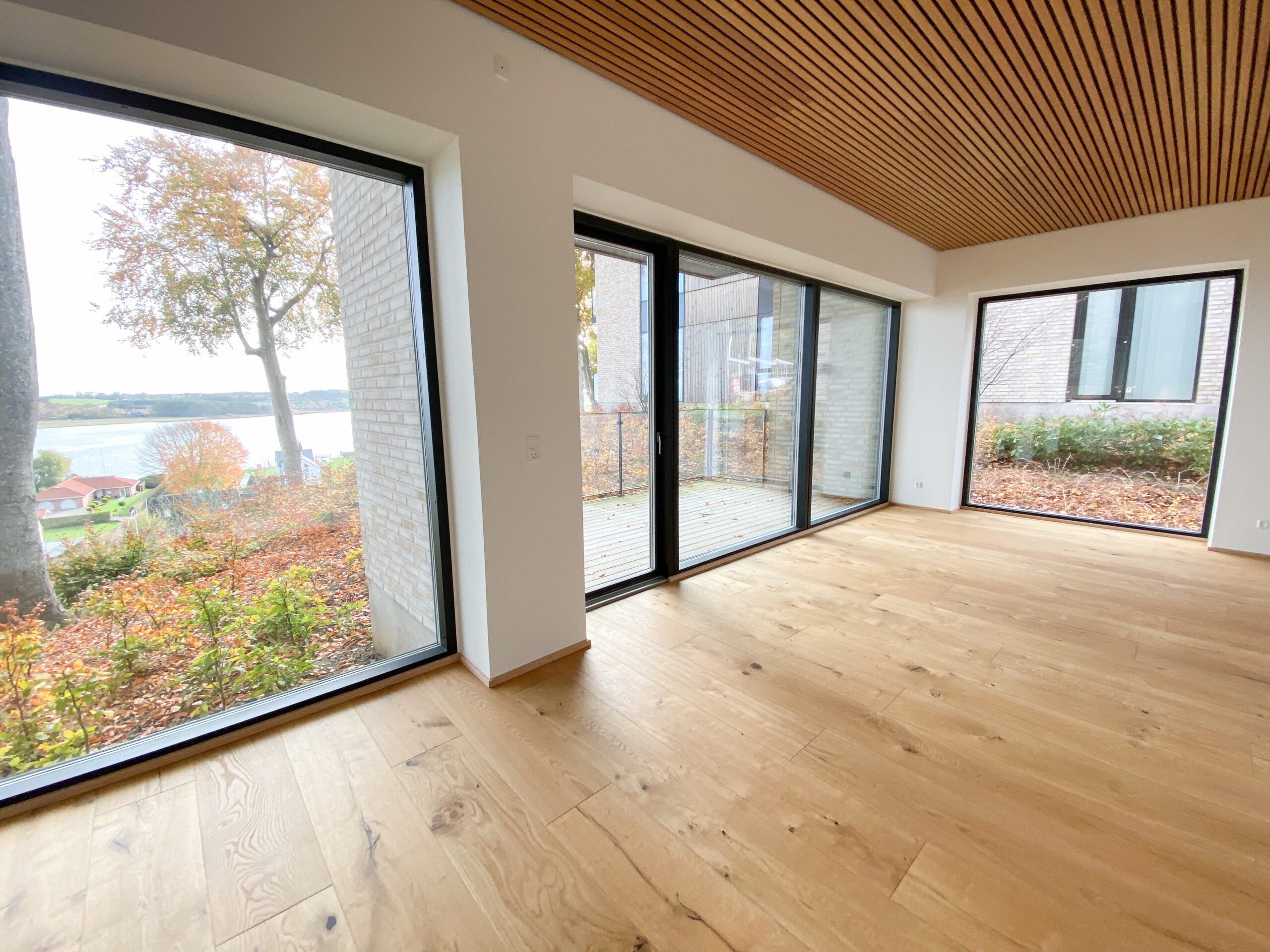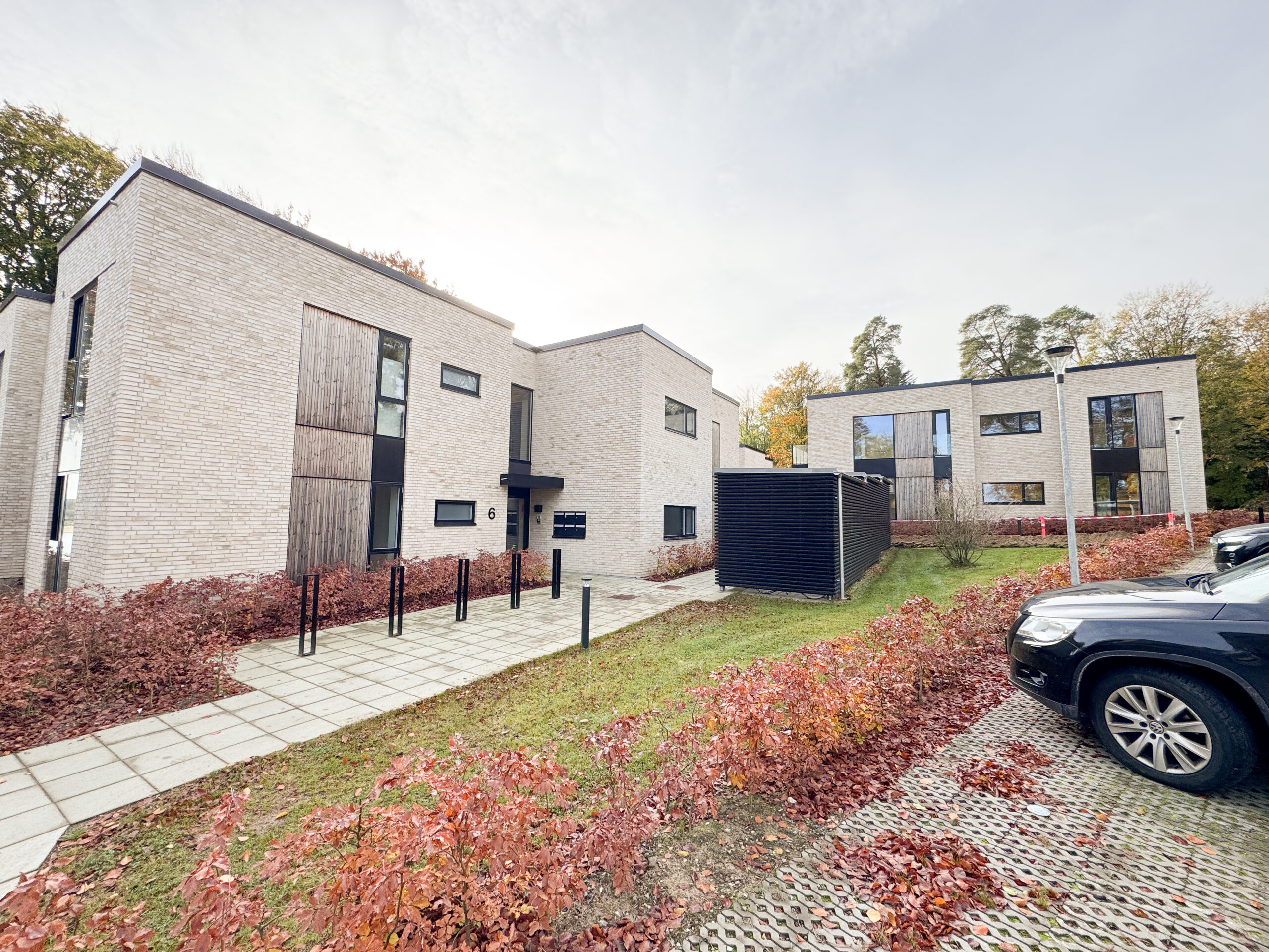 Skovhaven består af 26 boliger, hver tegnet med omhu af Kjær og Richter fra Aarhus, hvor nordisk minimalisme skaber ro og elegance. Store vinduespartier giver et sublimt lysindfald og et udstrakt udsyn over det bølgende landskab og fjorden.