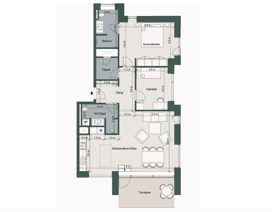 Der betales vand, varme og el direkte til forsyningen.