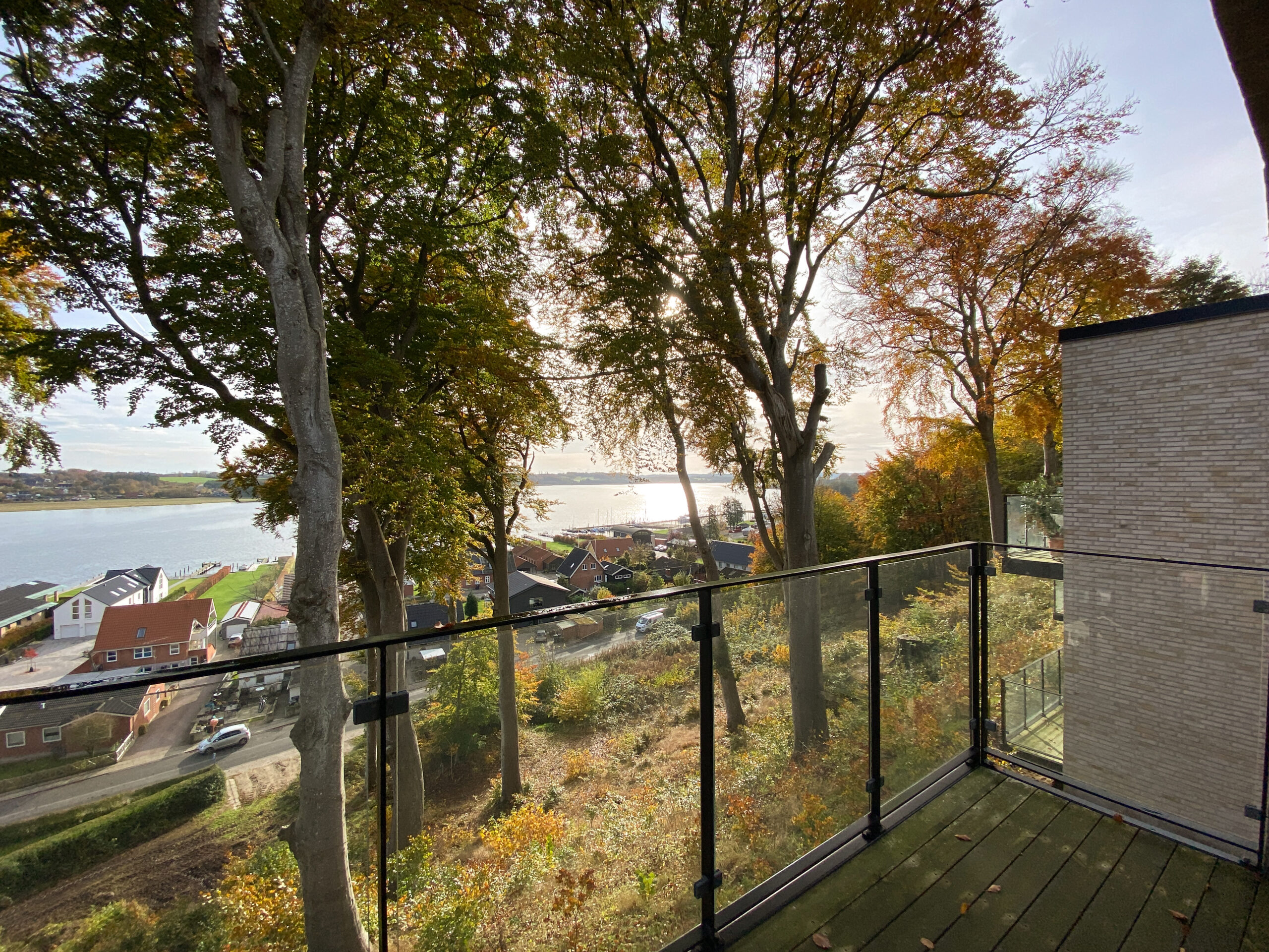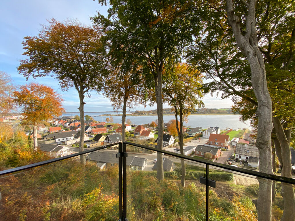 Udsigten flankeres af Fredskovens trækroner, som er beskyttet mod fældning, så landskab og fjord forbliver uforstyrret. Skovens stier og bund med vedbend, rhododendron og bærmispel giver ro til gåture, mens praktiske elementer som halvanden parkeringsplads og overdækket cykelparkering gør hverdagen nem.