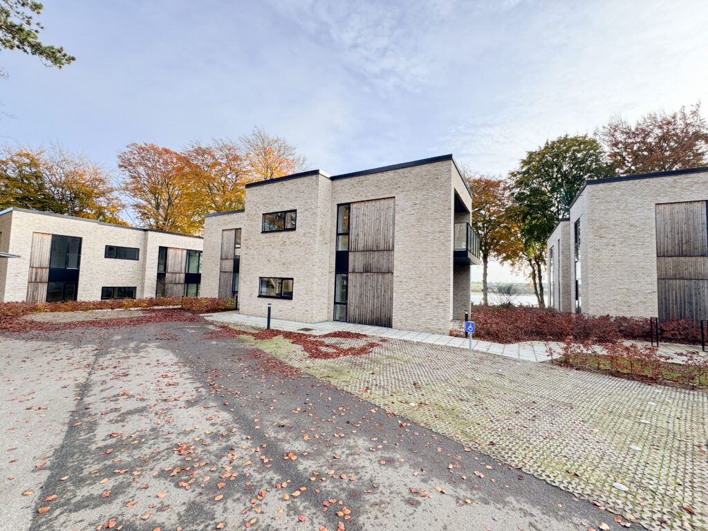 Skovhaven består af 26 boliger, hver tegnet med omhu af Kjær og Richter fra Aarhus, hvor nordisk minimalisme skaber ro og elegance. Store vinduespartier giver et sublimt lysindfald og et udstrakt udsyn over det bølgende landskab og fjorden.