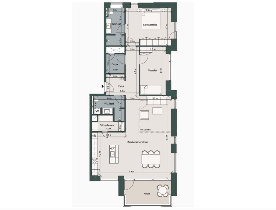 Eksklusiv 3-værelses lejlighed med altan og fantastisk udsigt