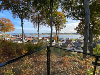 Udsigten flankeres af Fredskovens trækroner, som er beskyttet mod fældning, så landskab og fjord forbliver uforstyrret. Skovens stier og bund med vedbend, rhododendron og bærmispel giver ro til gåture, mens praktiske elementer som halvanden parkeringsplads og overdækket cykelparkering gør hverdagen nem.