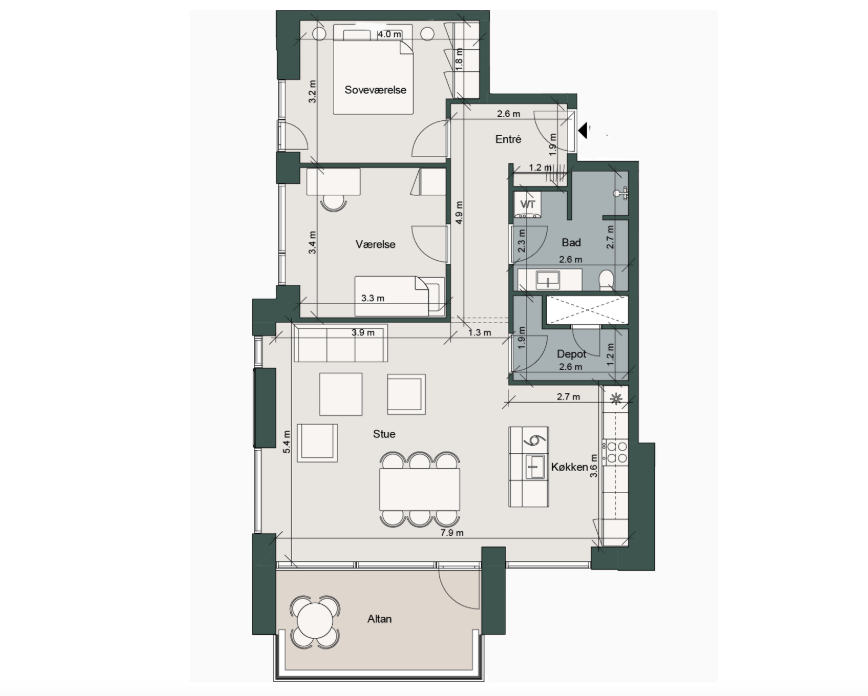Der betales vand, varme og el direkte til forsyningen.