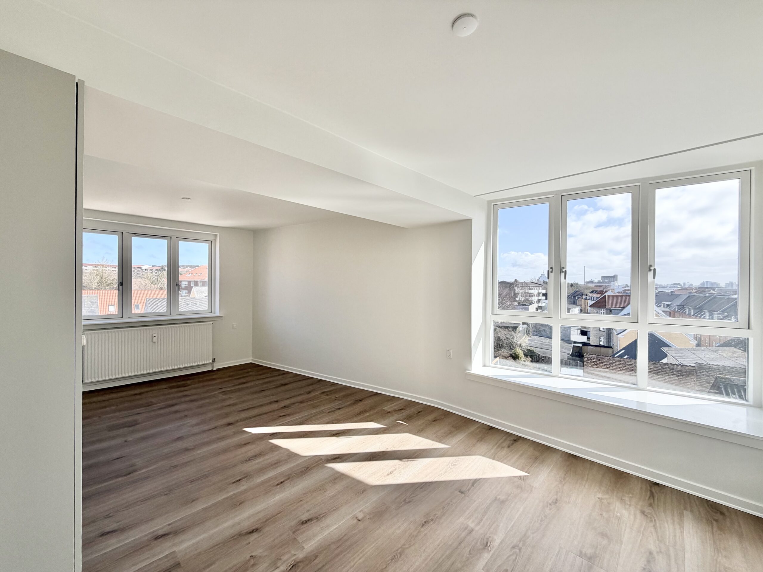 Området omkring lejligheden er præget af en livlig atmosfære, med caféer, indkøbsmuligheder og offentlig transport lige ved hånden. Du kan på få minutter krydse Limfjordsbroen og opleve Aalborgs pulserende liv, mens du også har den smukke natur ved Limfjorden og grønne områder tæt på.