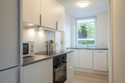 Lejligheden er nyrenoveret, møbleret og med fuldt udstyret køkken inkl. opvaskemaskine.
