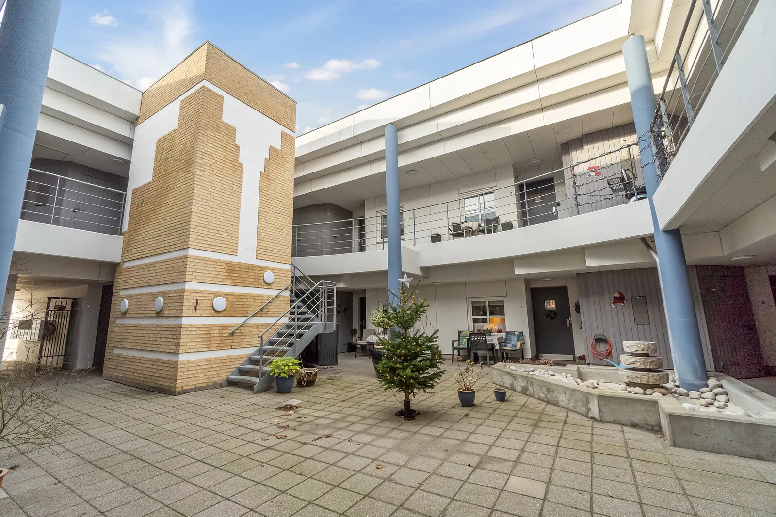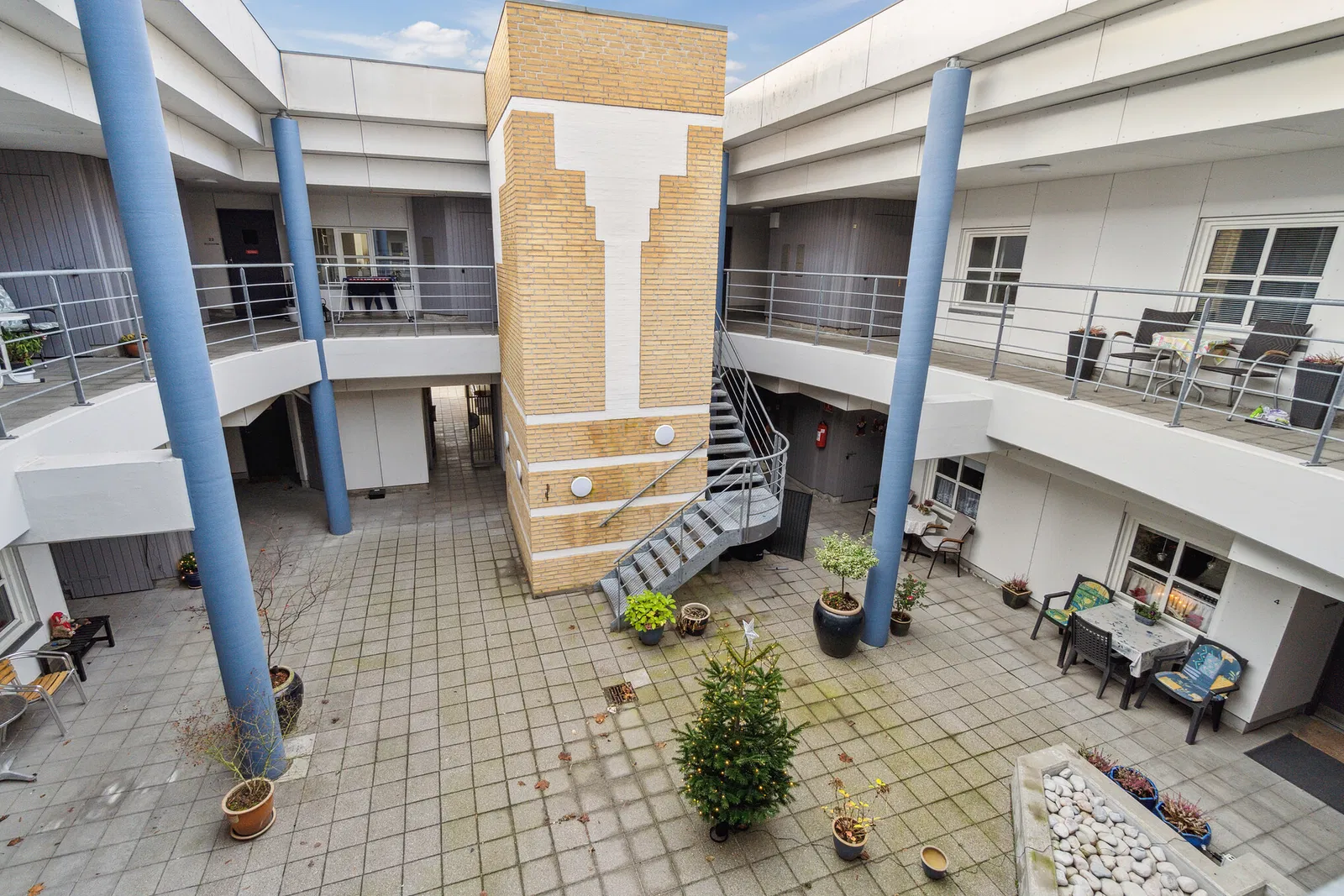 Denne charmerende ejendom samler boligerne om et lukket gårdrum, hvor der er elevatoradgang og skur til ekstra opbevaring. Gårdmiljøet indbyder til hyggelige pauser i hverdagen.