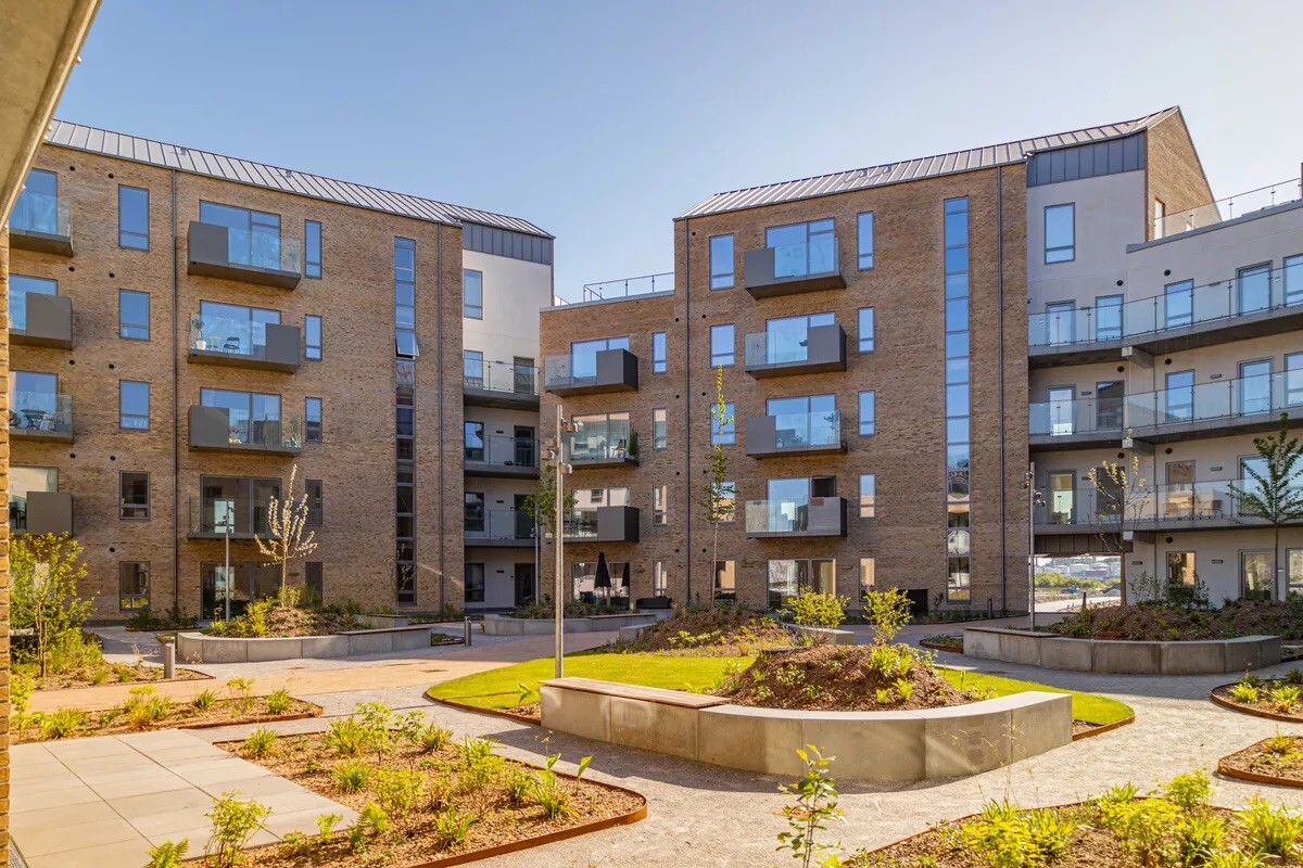 Der er desuden stor fælles, grøn tagterrasse med orangeri, samt en gårdhave hvor der også er lagt vægt på det grønne, med masser af frugttræer og hyggelige kroge.