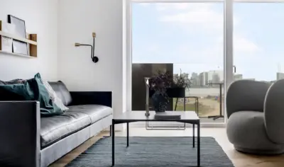 Når du træder ind i lejligheden, mødes du af det store og lyse køkken-alrum, hvor lyset strømmer ind gennem de store vinduespartier. Her kan du glæde dig til at lave mad i det lækre grebsfrie HTH-køkken med Corian-bordplade og fuld AEG hvidevarepakke. Fra køkken-alrummet har du udgang til den store syd/vestvendte altan, hvor du kan nyde de varme sommeraftener med grill og hyggelige stunder. Derudover får du to gode værelser, hvoraf det ene er med indbyggede skabe. Badeværelset er lyst og lækkert med vaskesøjle.