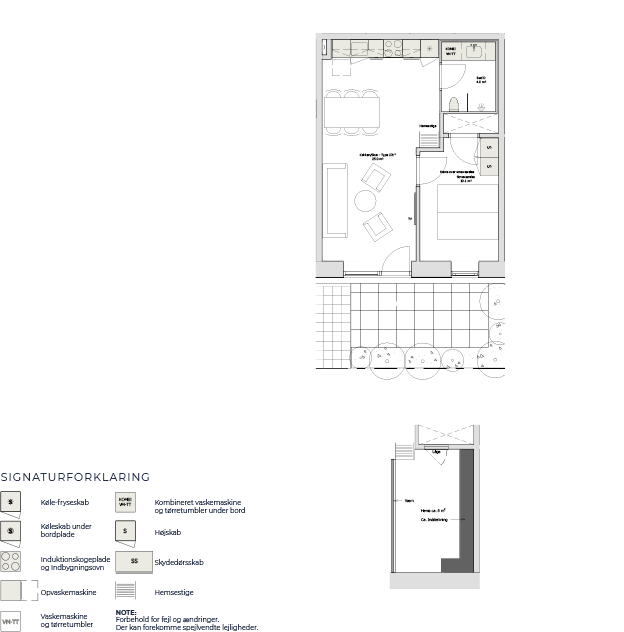 Du får alt i hårde hvidevarer, vaskesøjle i badeværelset – kombineret vaskemaskine og tørretumbler i studios – gulvvarme i alle rum.