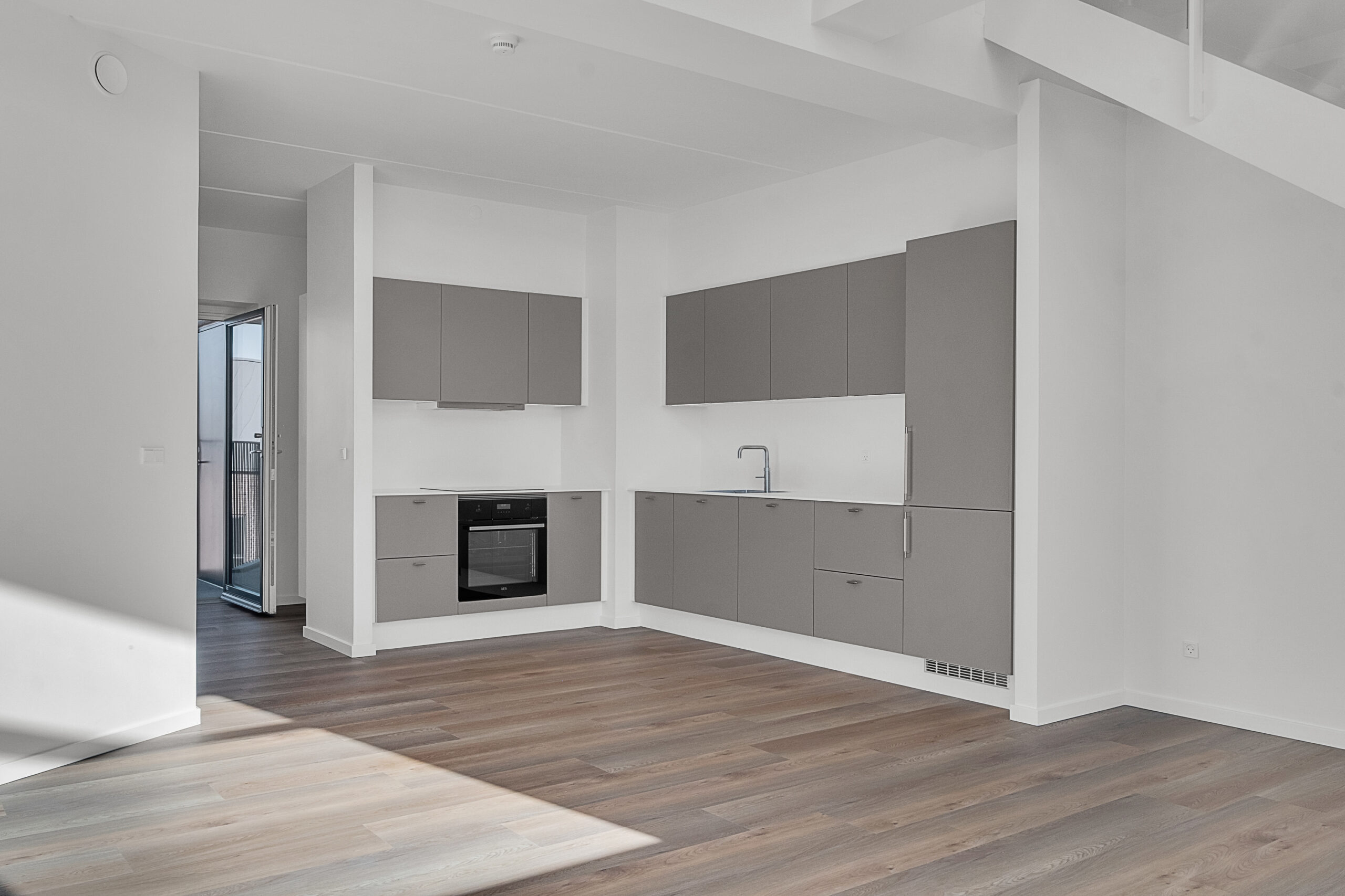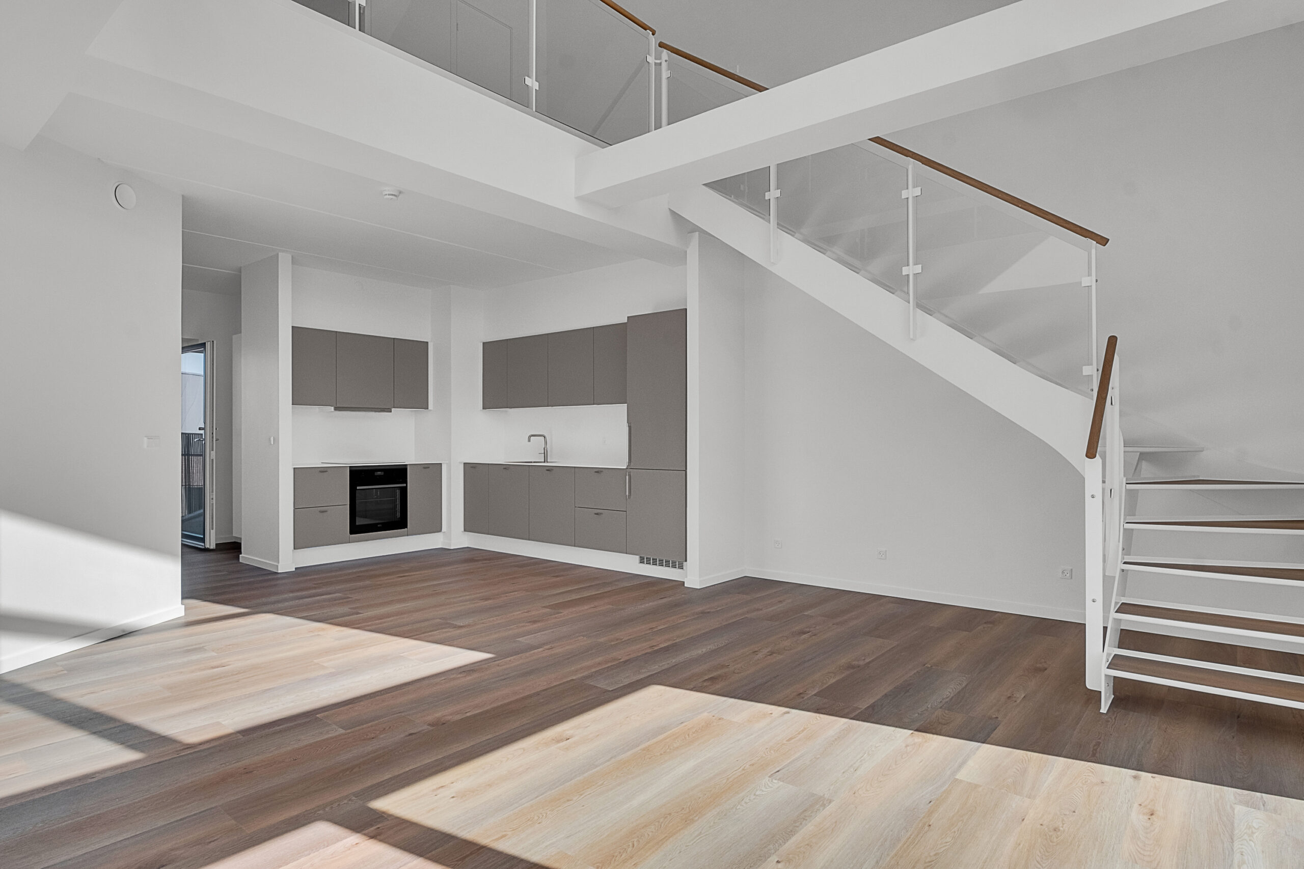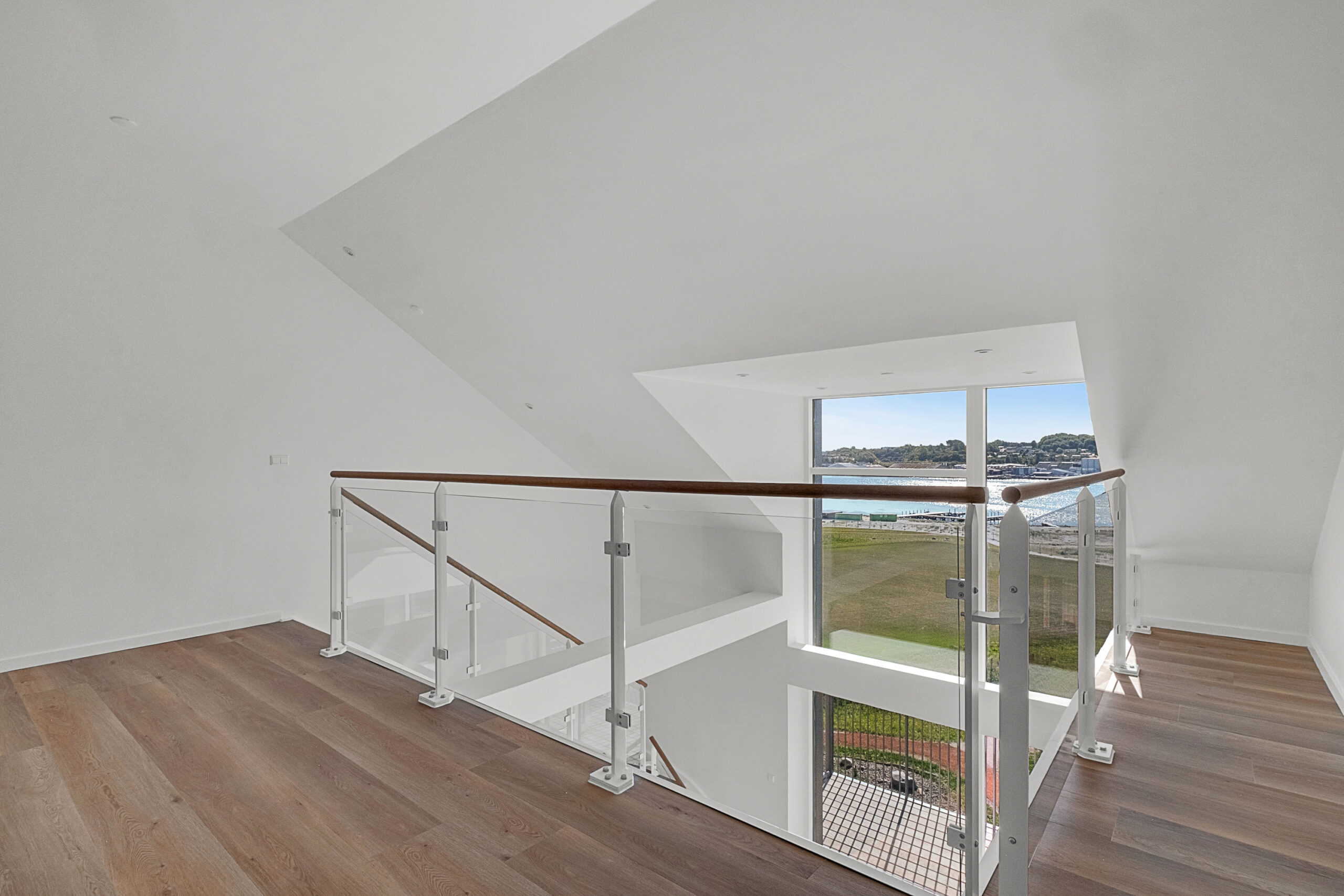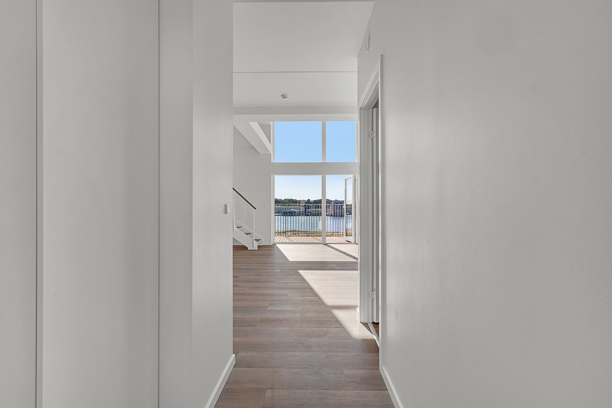Velkommen til denne lejlighed hvor moderne design møder naturens ro. En indflytningsklar bolig med en behagelig atmosfære. Denne skønne 4-værelses penthouse lejlighed byder på en fantastisk udsigt over park og fjord, og er fordelt over to plan. På 5. sal træder du ind i en lys entré, der har fast skab til overtøj og sko. Det åbne leverum med store vinduespartier til kip giver et enestående lysindfald, og her finder du et eksklusivt HTH køkken udstyret med alt i hårde hvidevarer samt Quooker. Der er god plads til både spiseplads og stue, og fra leverummet er der udgang til en stor, skøn altan. Lejligheden rummer også et soveværelse og et værelse med faste skabe, samt et stort badeværelse. Trappen fører dig op til en hyggelig repos, hvor der er plads til en sofa eller stol, og herfra kan du nyde udsigten gennem de store vinduer. Det store soveværelse er indrettet med glasvæg, så du kan ligge og nyde udsigten over fjord og park. Der er også faste skabe i soveværelset samt et lille depotrum i lejligheden. I parkeringsområdet er der mulighed for leje af p-plads, og der er aflåst cykelparkering. Ejendommen