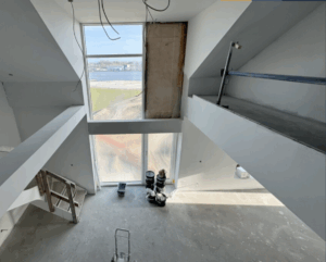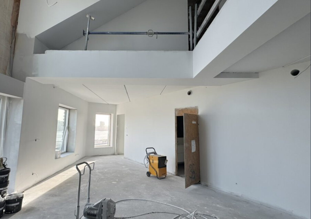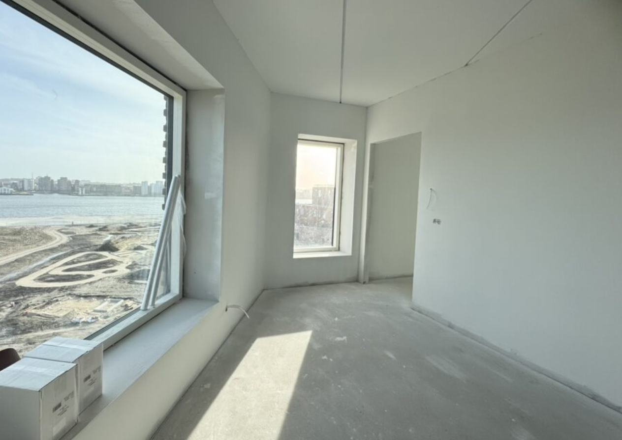 Denne skønne 4-værelses penthouse lejlighed har fantastisk udsigt over park og fjord. Lejligheden er i to plan. I 5. sal er der en god entré med fast skab til overtøj og sko. Derefter bliver man draget ind i leverummet med de store vinduespartier til kip og et fantastisk lysindfald. I leverummet er der et eksklusivt HTH køkken med alt i hårde hvidevarer samt Quooker. Her er plads til spiseplads samt stue. Fra leverummet er der udgang til den store skønne altan samt adgang til soveværelse og værelse med faste skabe samt stort lækkert badeværelse. Trappen går ovenpå hvor man møder et skønt rum hvor der er plads til sofa eller stol med skønt kig i de store vinduer. Derfra er der soveværelse med glasvæg, så man kan ligge og se ud over fjord og park. Der kommer ligeledes glas værn rundt ved trappen. Der er faste skabe i soveværelset.
