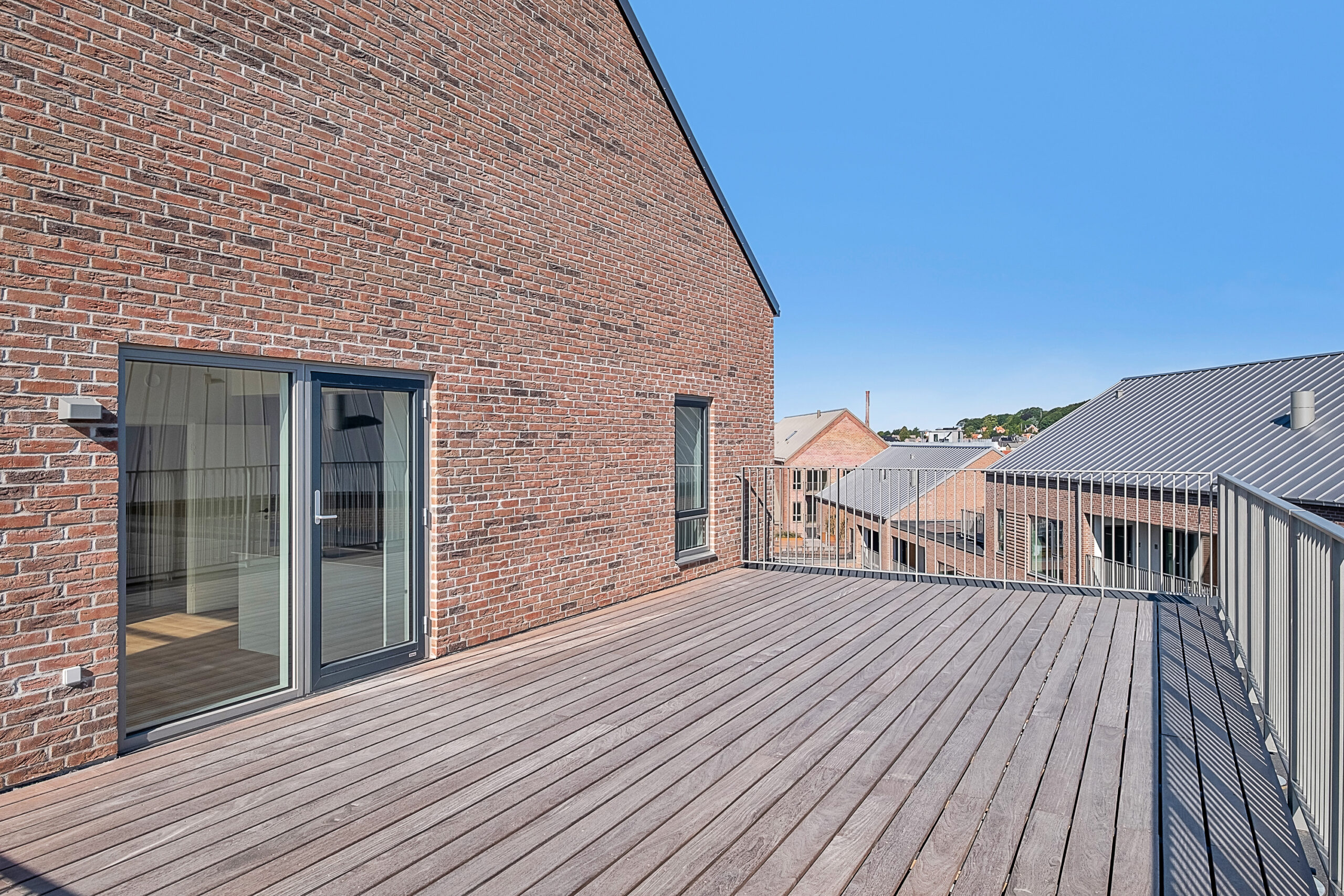 StigsborgHus tilbyder en skøn tagterrasse med panoramaudsigt over park, fjord og Aalborg, samt et hyggeligt gårdmiljø. Der er også aflåst cykelparkering og mulighed for at leje p-plads i parkeringsområdet.