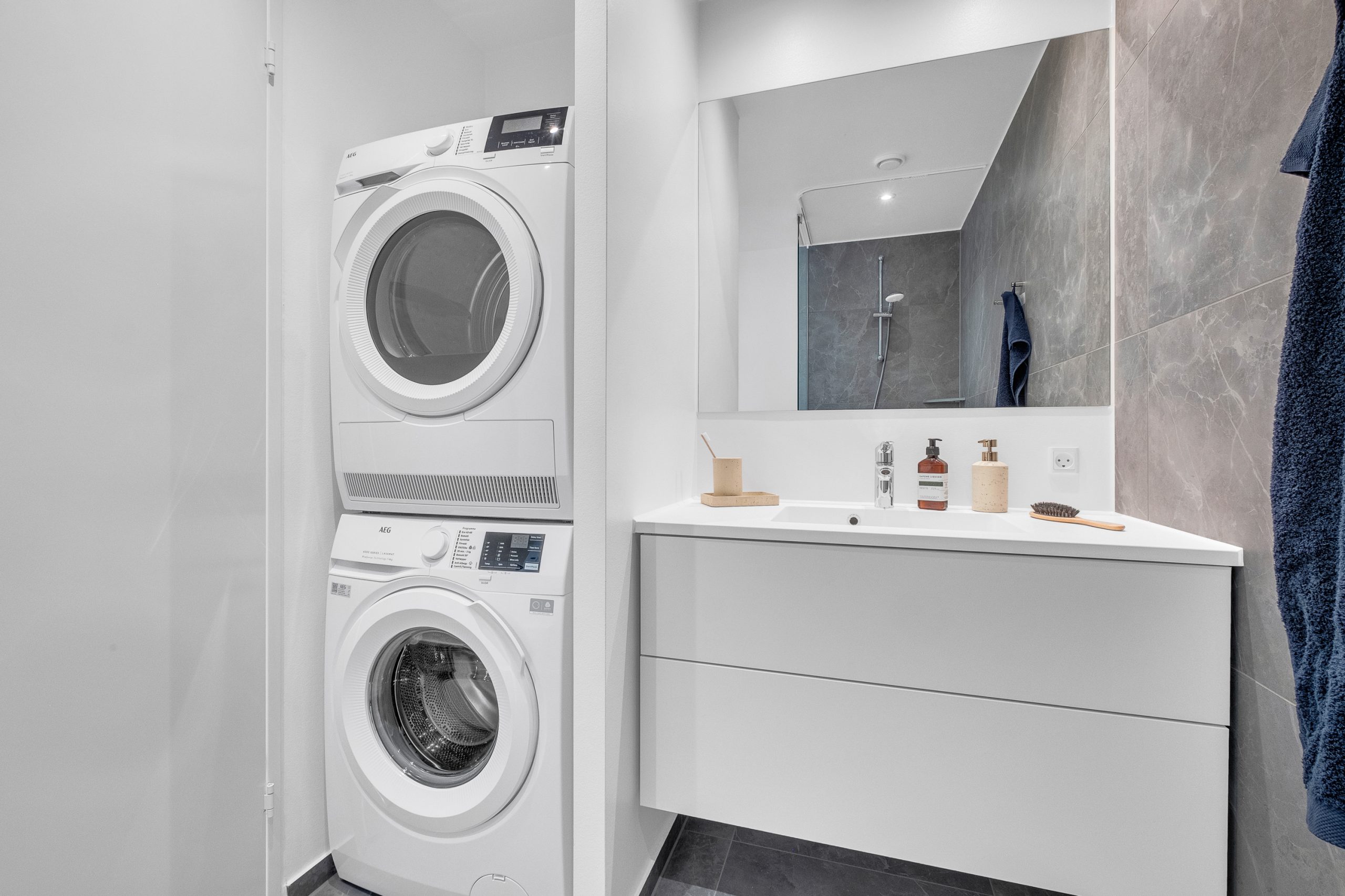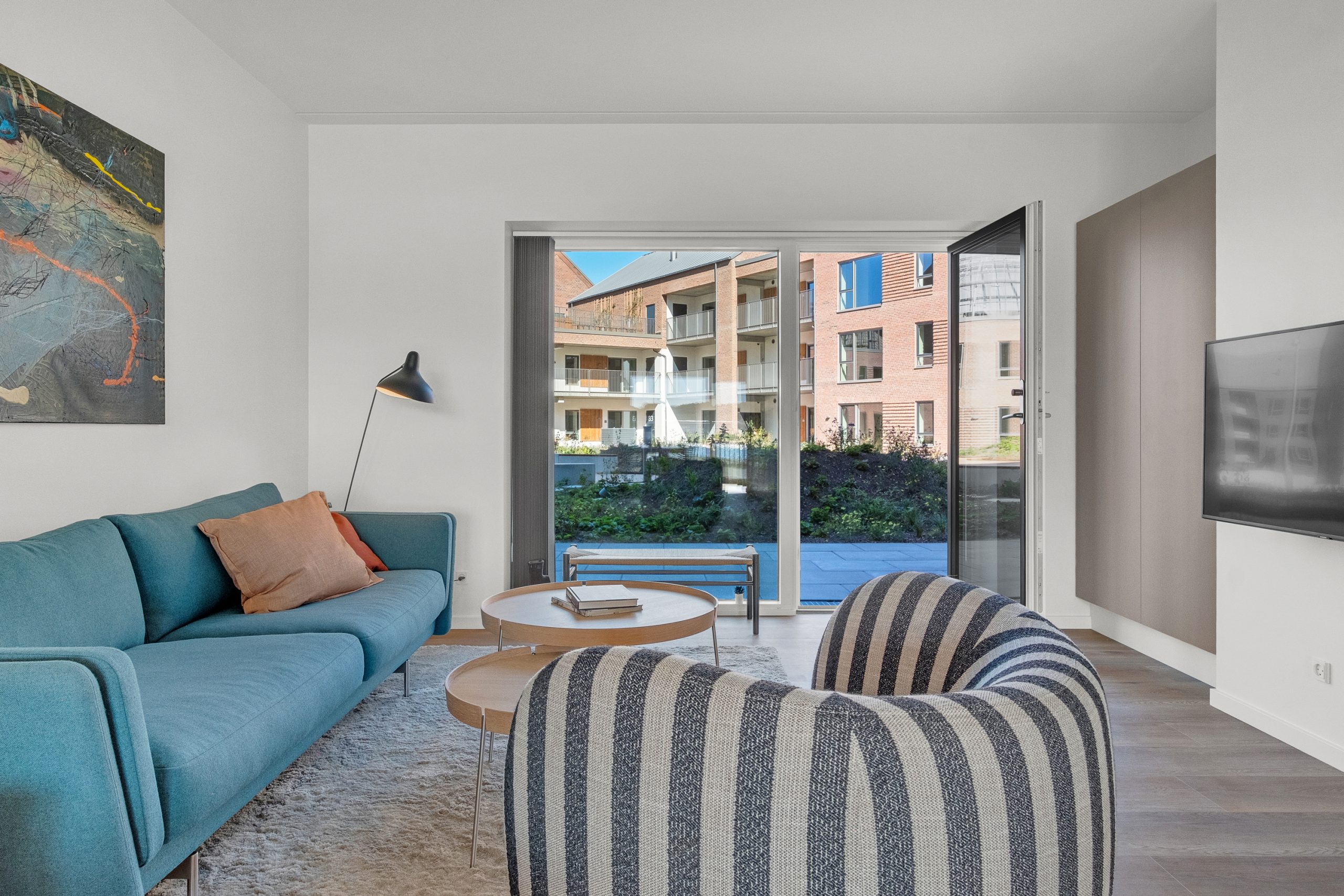 Velkommen til denne lejlighed hvor moderne design møder naturens ro i det luksuriøse boligområde på Stigsborg. En indflytningsklar bolig med en behagelig atmosfære, der strækker sig over to etager.