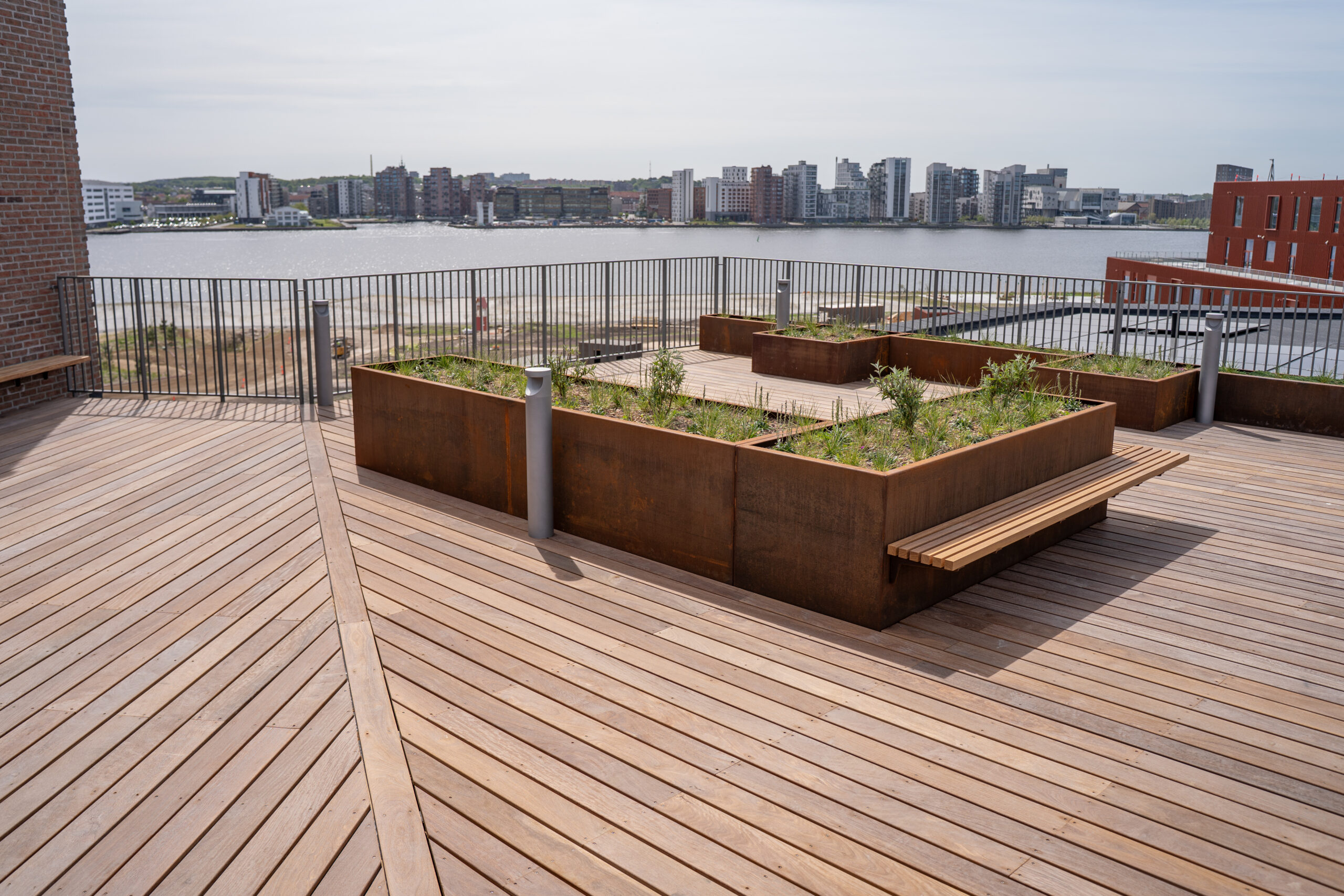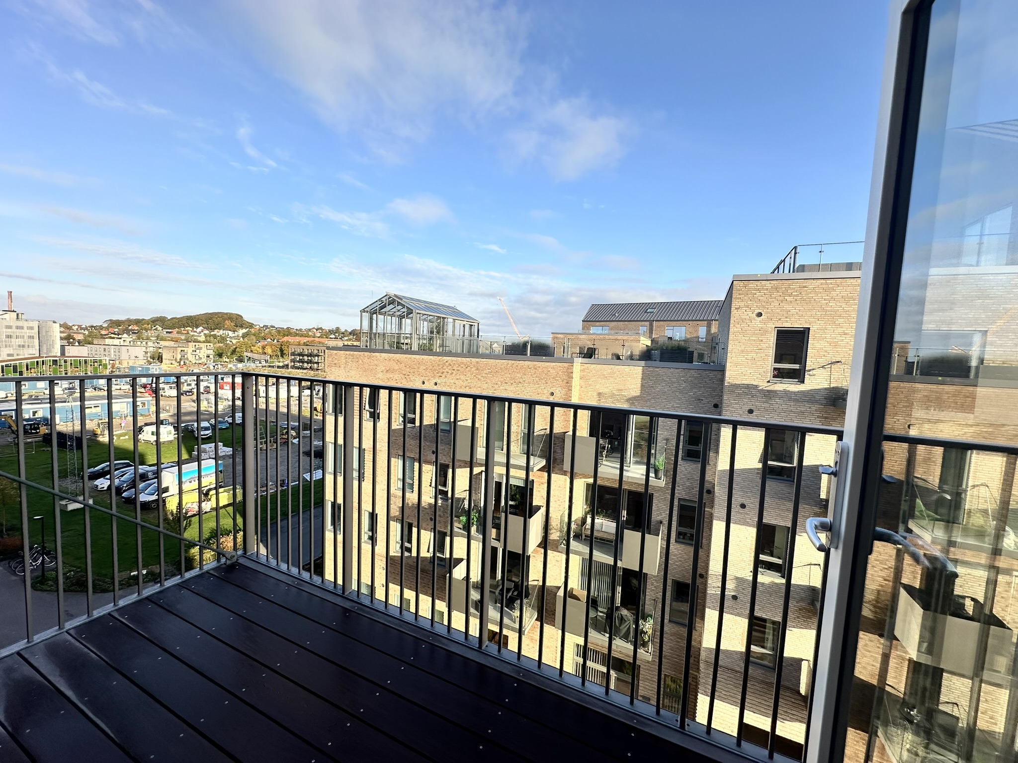 StigsborgHus tilbyder en dejlig tagterrasse med panoramaudsigt over parken, fjorden og Aalborg. Her kan du nyde solens stråler i et møbleret orangeri samt i det skønne gårdmiljø. Ejendommen er nyopført og står i flot stand, hvilket gør det til et ideelt valg for den moderne lejer.