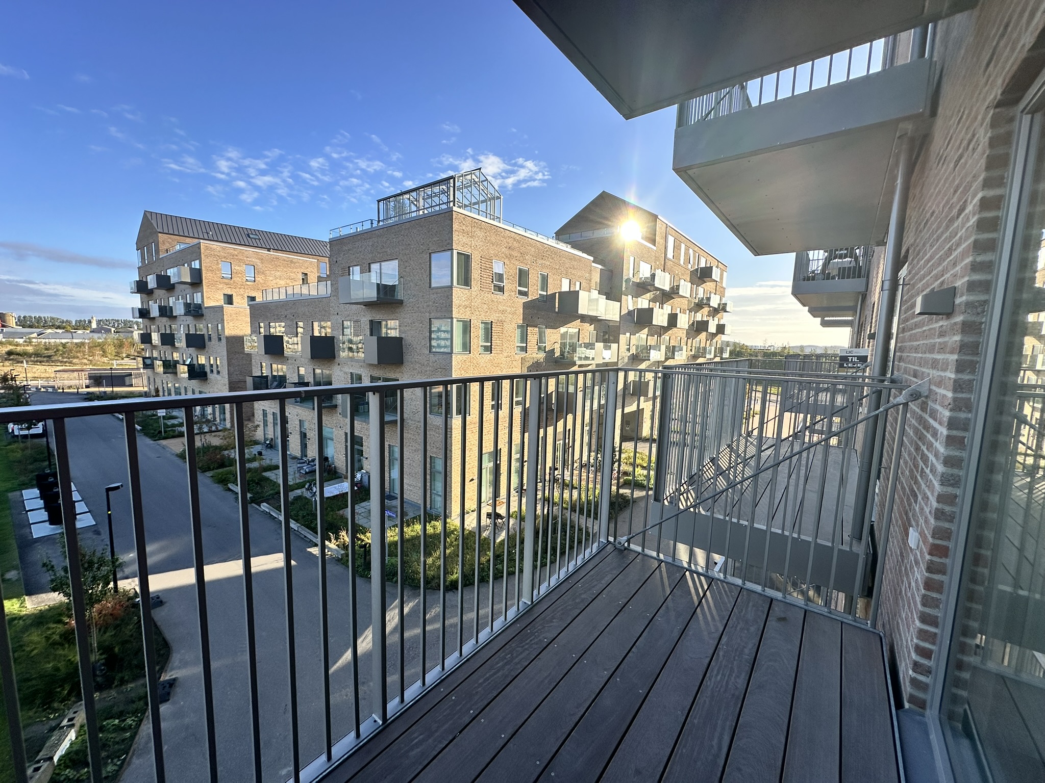 Lejligheden byder på en rummelig éntre med store vinduespartier, der lukker det bløde lys ind fra gårdarealet. Det åbne leverum er præget af et smukt HTH køkken, udstyret med alt i hårde hvidevarer, som naturligt opdeler køkken og alrum fra stuen. Herfra er der adgang til den store, indbydende altan, hvor du kan nyde solens stråler. De to gode værelser har begge indbygget opbevaring; det ene med skydelåger og det andet med fast skab. Et skønt badeværelse med vaskemaskine og tørretumbler fuldender lejlighedens funktionalitet.