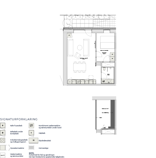 Du får alt i hårde hvidevarer, vaskesøjle i badeværelset – kombineret vaskemaskine og tørretumbler i studios – gulvvarme i alle rum.