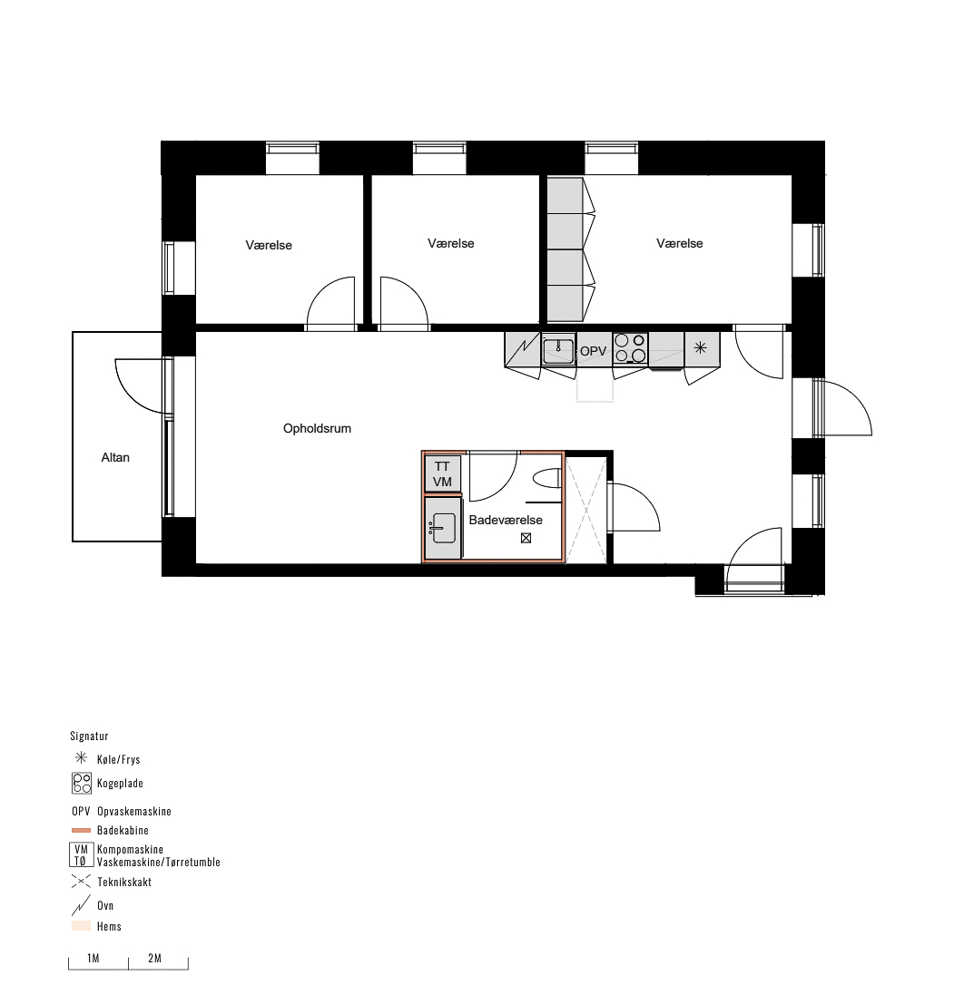 Lejligheden er særdeles rummelig og med højt til loftet. Fra køkken og stue har du adgang til den vestvendte altan, hvor du kan nyde udsigten og det gode vejr.