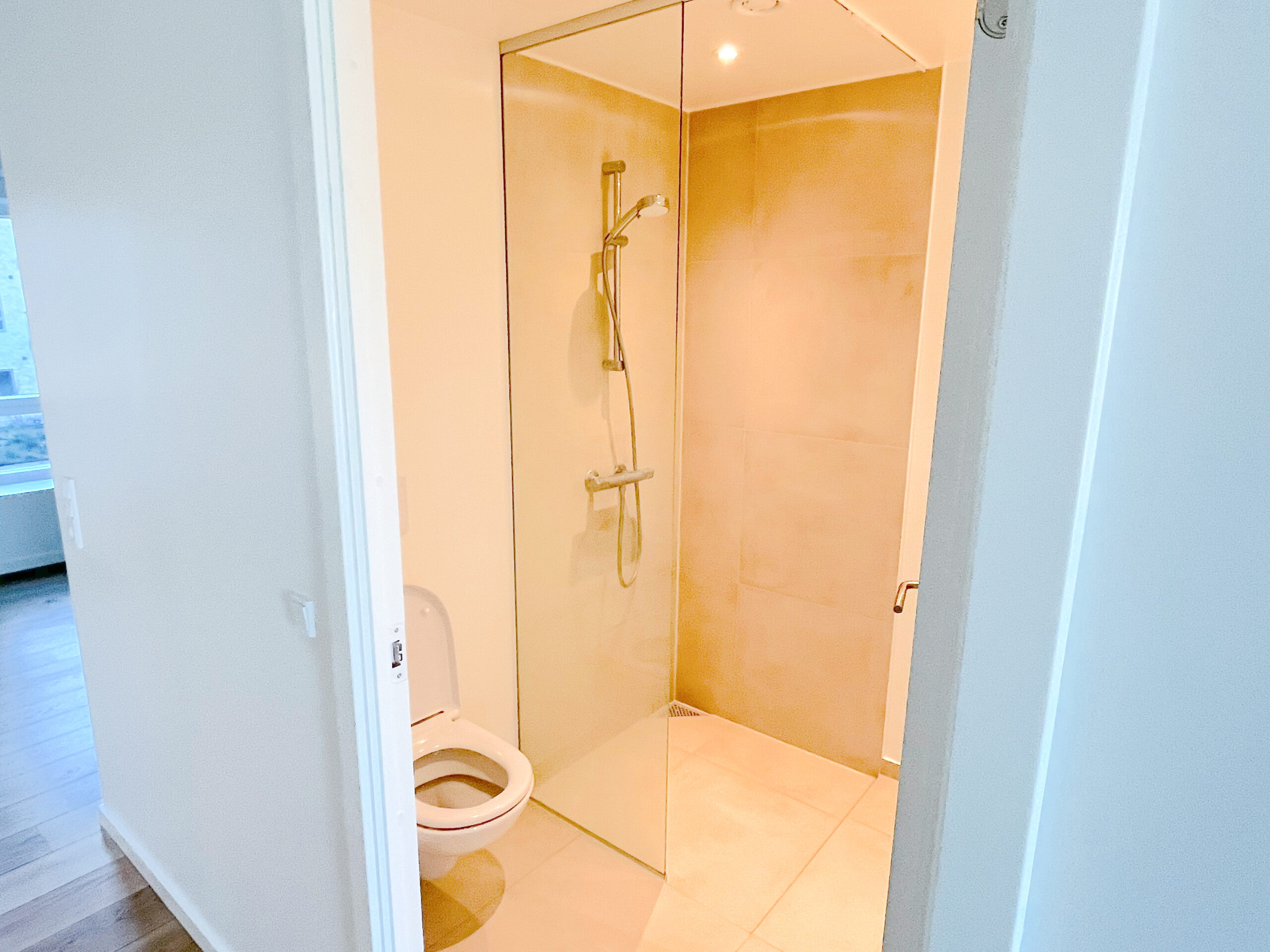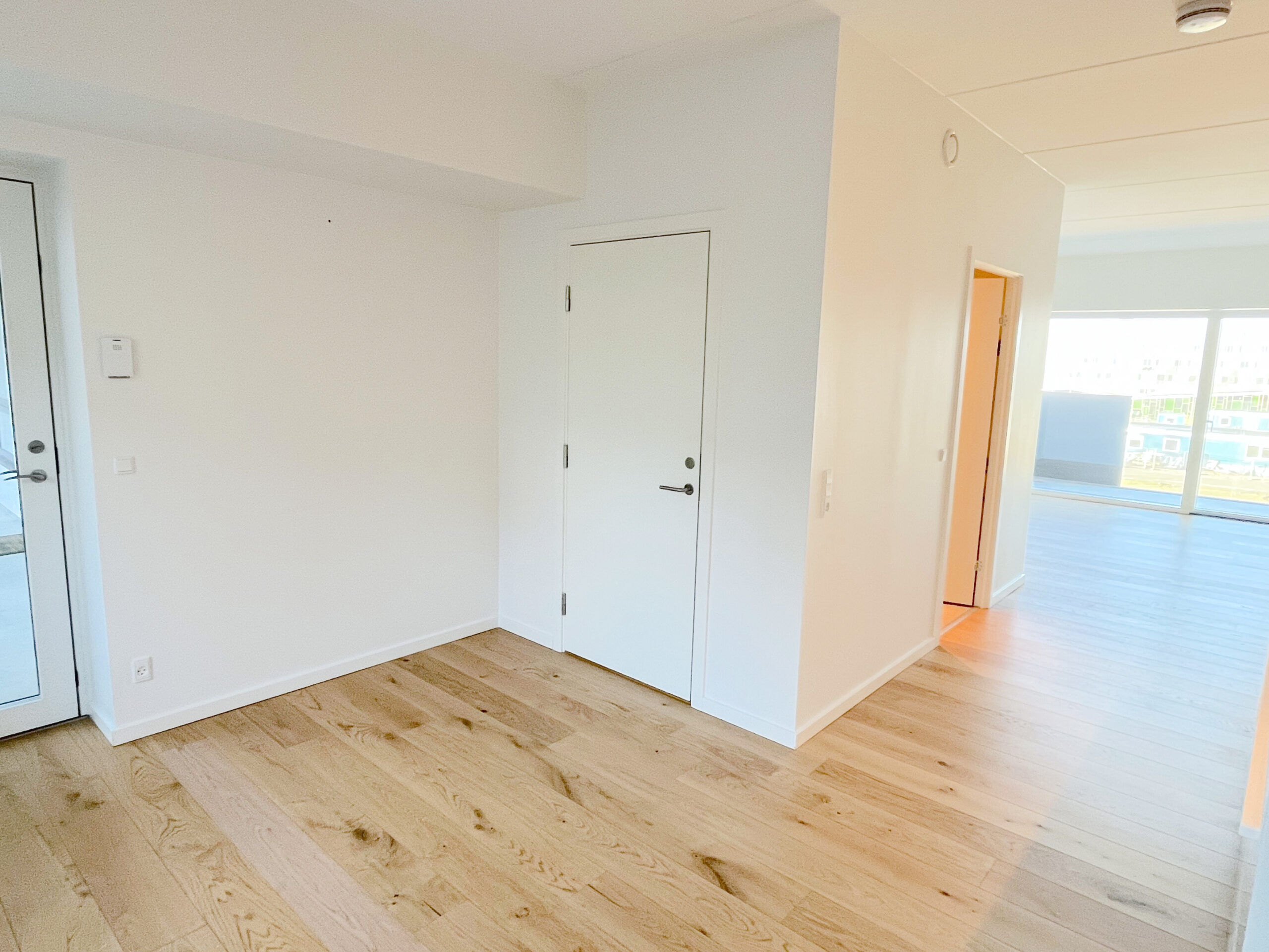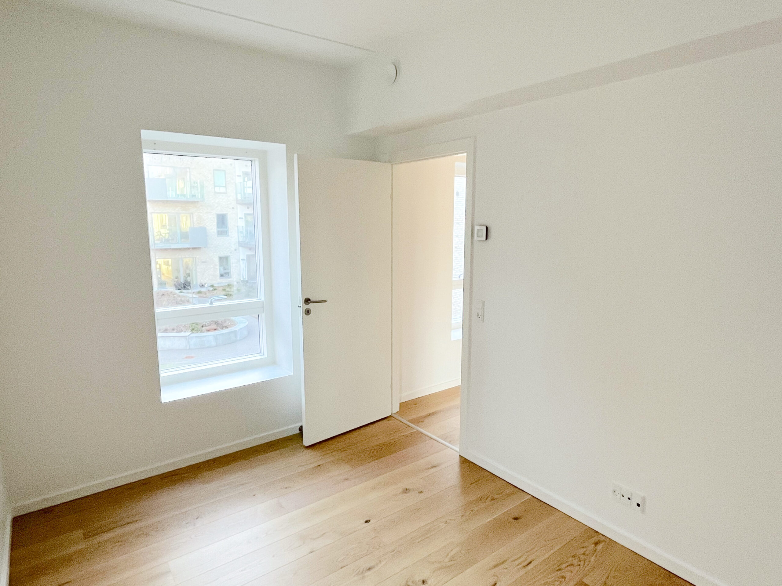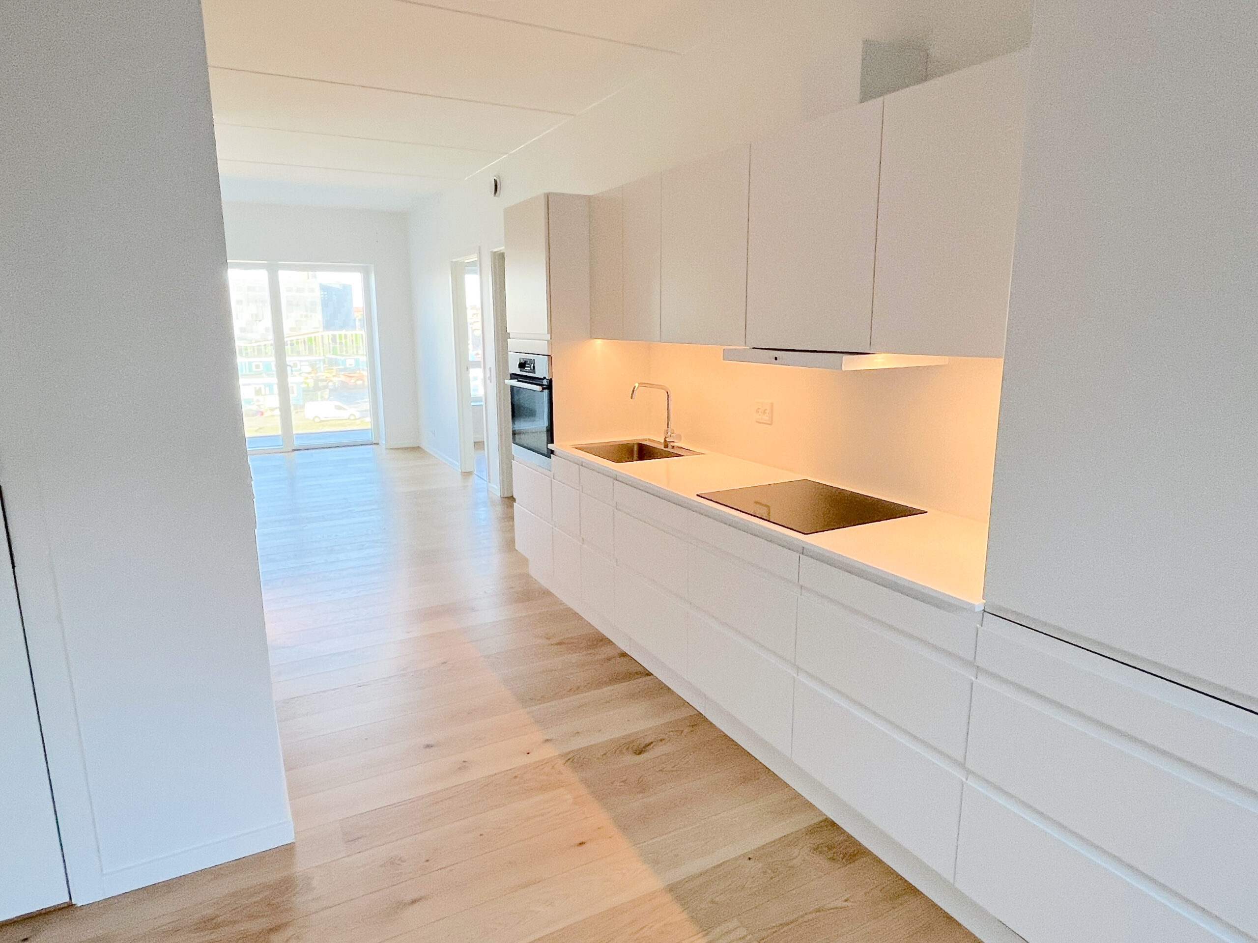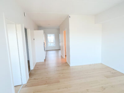Træd ind i dit nye hjem og bliv mødt af en følelse af luksus og komfort. Lejligheden er opført i kvalitetsmaterialer og er indrettet med øje for detaljen. Her får du blandt andet et stilfuldt HTH-køkken, udstyret med en grebsfri indretning og en elegant Corian-bordplade, samt en komplet hvidevarepakke fra AEG, der inkluderer opvaskemaskine, vaskemaskine og tørretumbler, så din hverdag bliver så bekvem som muligt. De smukke egetræsgulve i fuldstavsparket tilføjer en varm og indbydende atmosfære til hjemmet og fuldender det lyse, nordiske look.