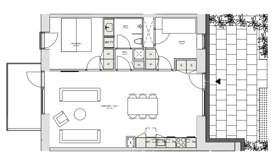 Der hører desuden depotrum til alle boliger – enten i lejligheden eller i P-etagen – eller begge steder.