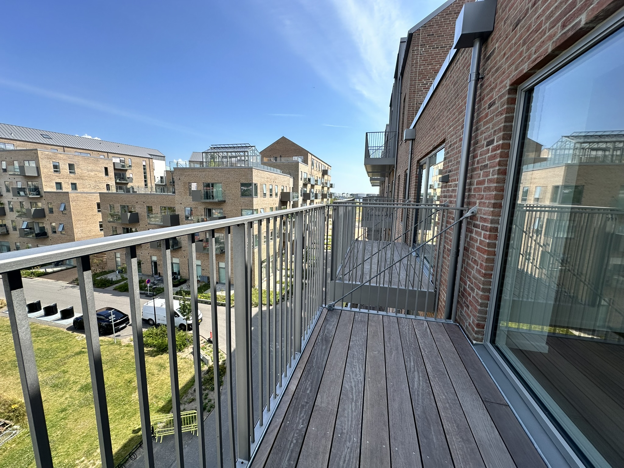 Lejligheden byder på en lys og indbydende stue, der er perfekt til både afslapning og samvær. Det eksklusive HTH køkken er udstyret med alt i hårde hvidevarer og giver god plads til både madlavning og hyggelige måltider. Fra stuen er der direkte adgang til en skøn altan, hvor man kan nyde udsigten over gårdrummet og naturen. Det rummelige værelse er ideelt til ro og privatliv, mens badeværelset er praktisk indrettet med faste skabe, tørretumbler og vaskemaskine.