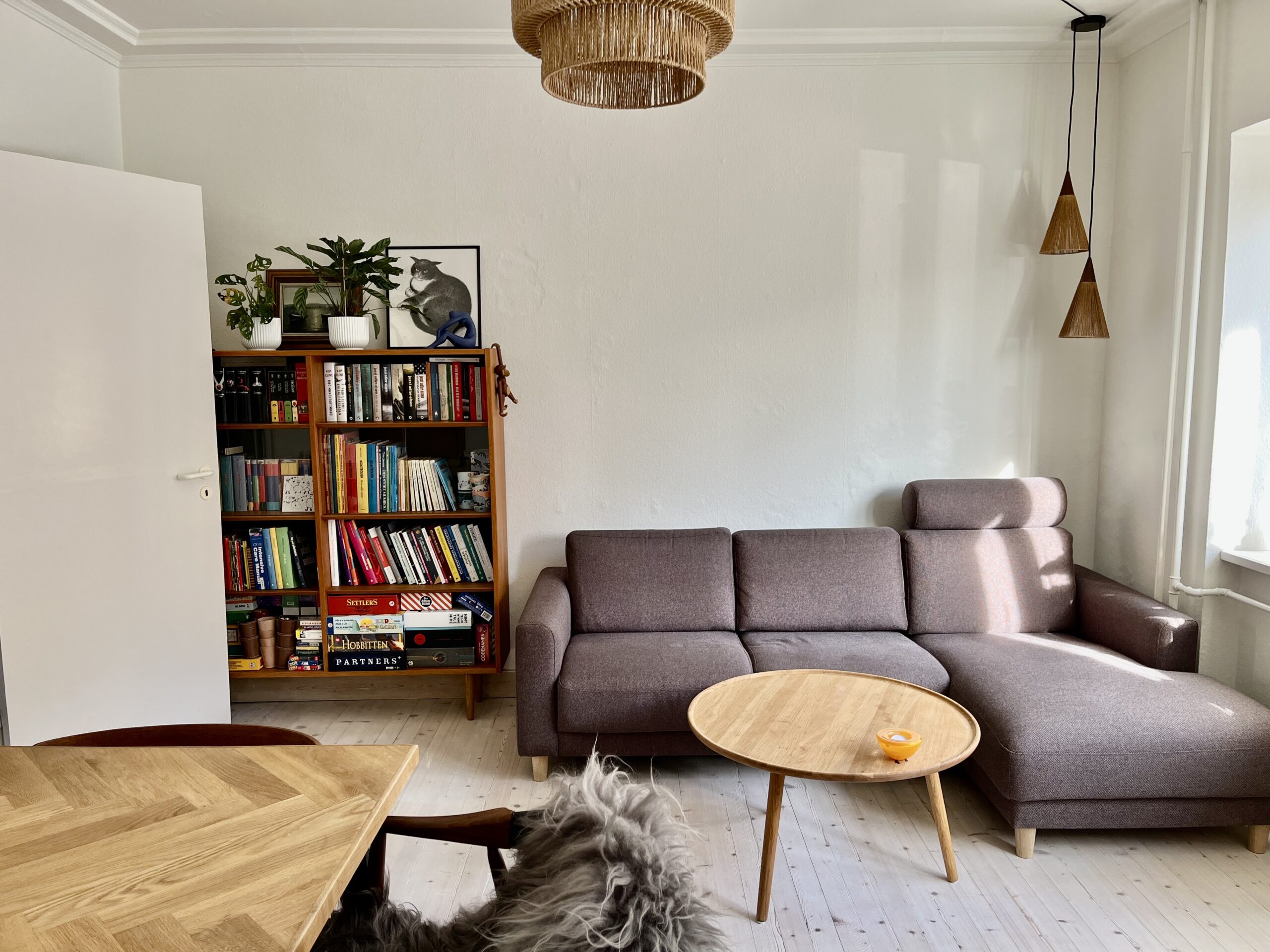 Stuen er flot og lys med sit store vinduesparti. Der er nemt plads til spisebordsplads og tv-stue i samme rum, som illustreres på billederne.