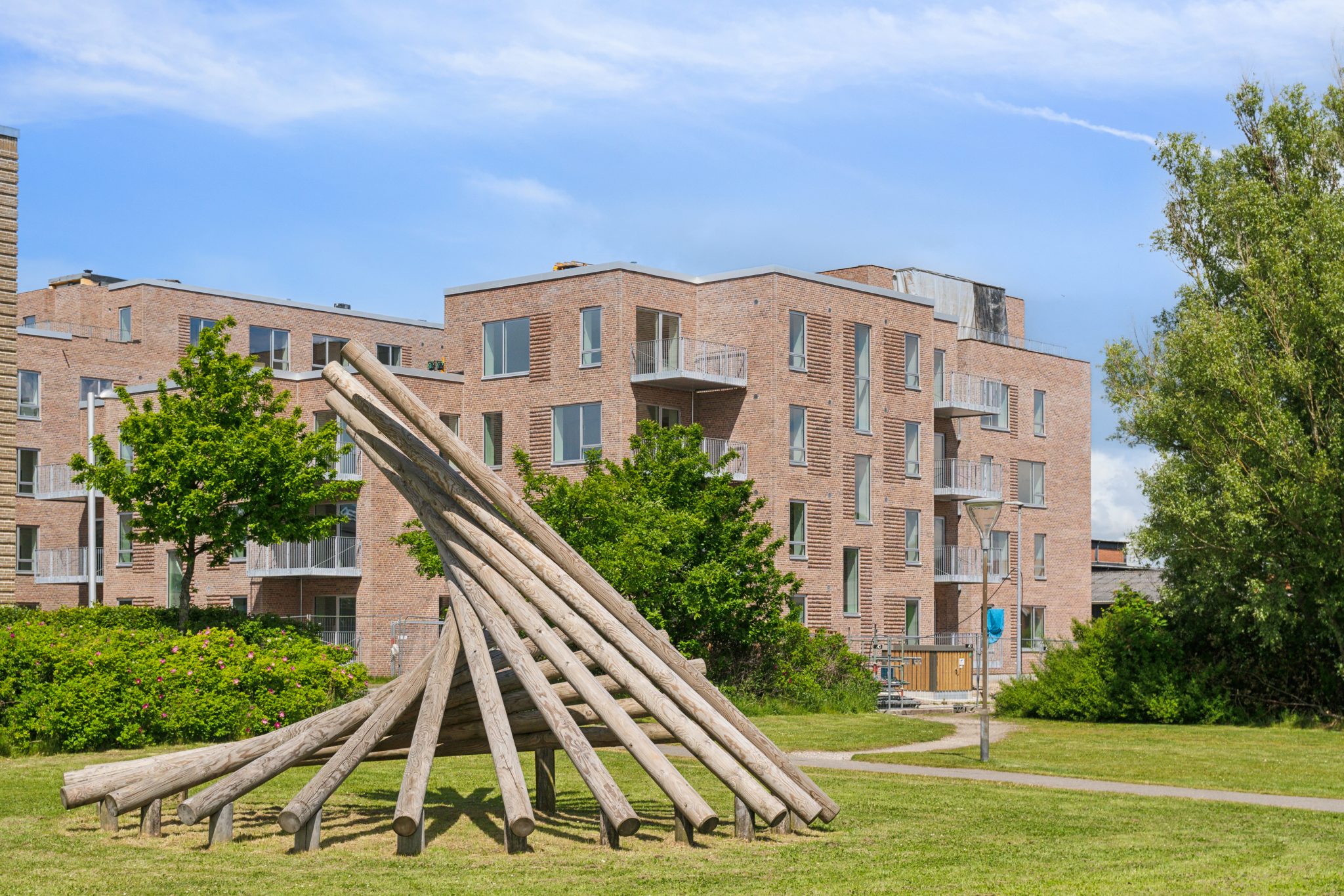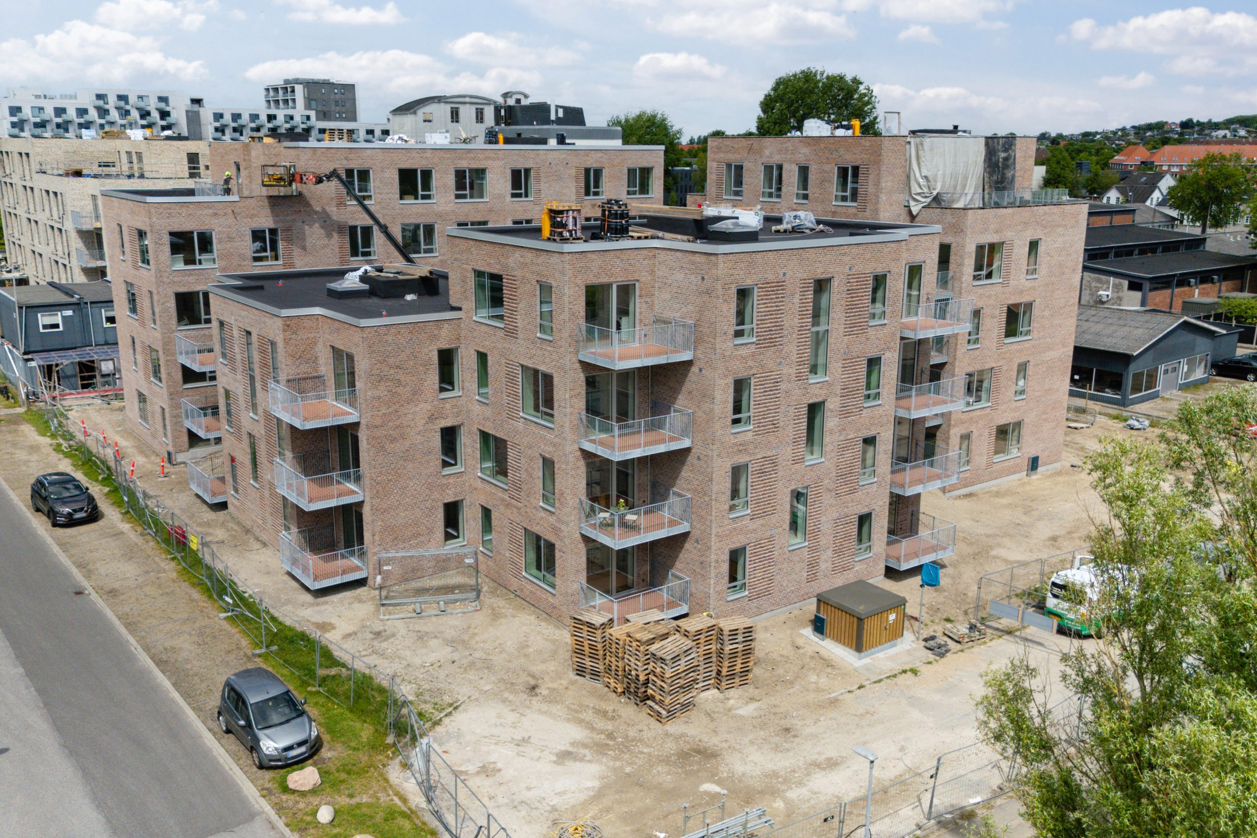 Lækre lejligheder i en arkitektonisk veludført og afstemt, firlængede ejendom giver beboerne i Strandhusene et skønt gårdmiljø mellem de niveauforskudte bygninger, og flere af lejlighederne har en slående udsigt over Limfjorden og Lindholm Strandpark mod syd. Byggeriet appellerer både til førstegangsforældre, modne par og singler, der gerne vil forkæle sig selv lidt ekstra, når det gælder bolig.