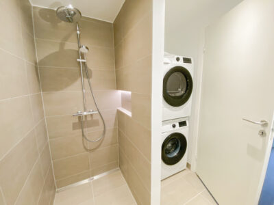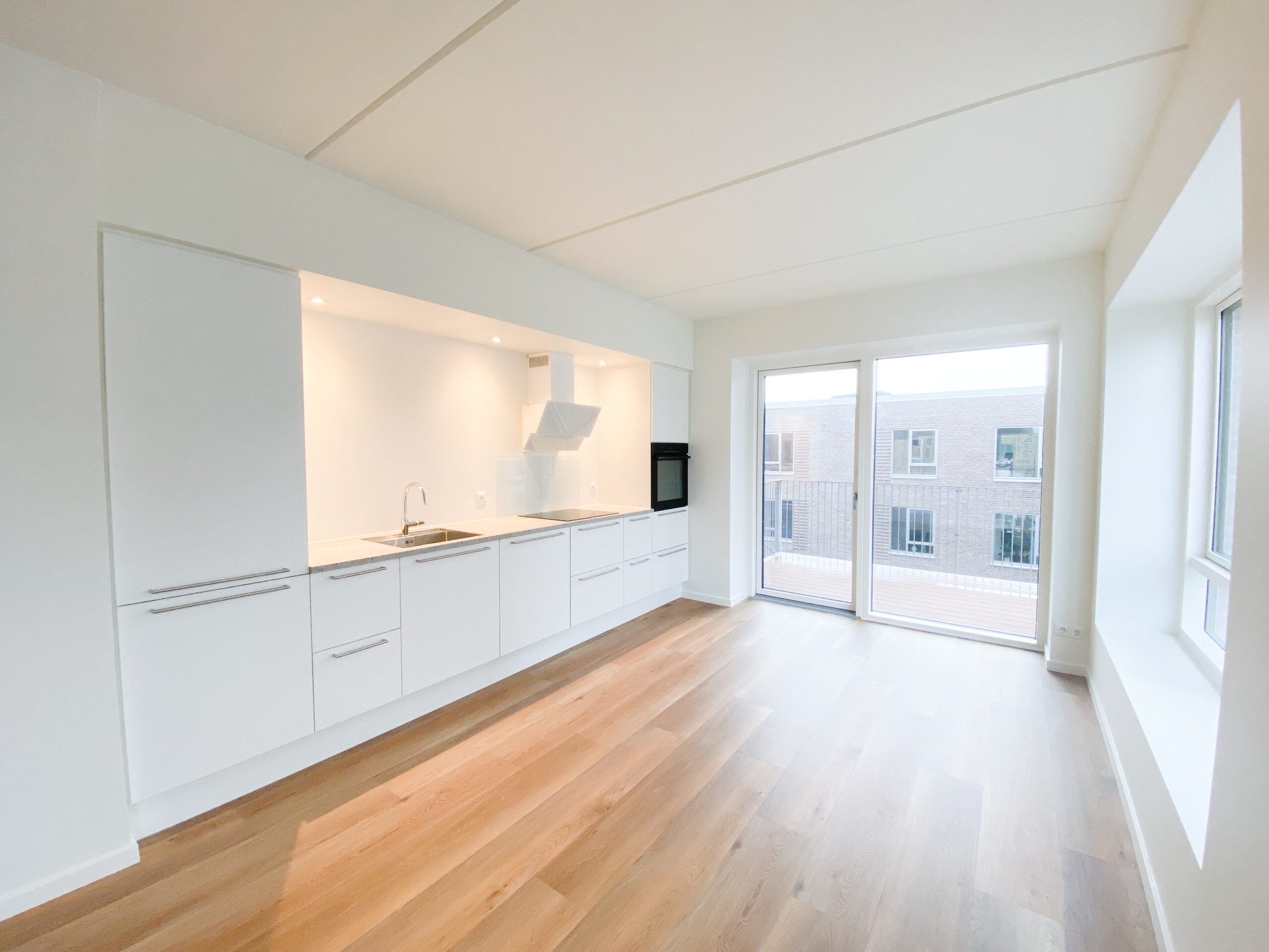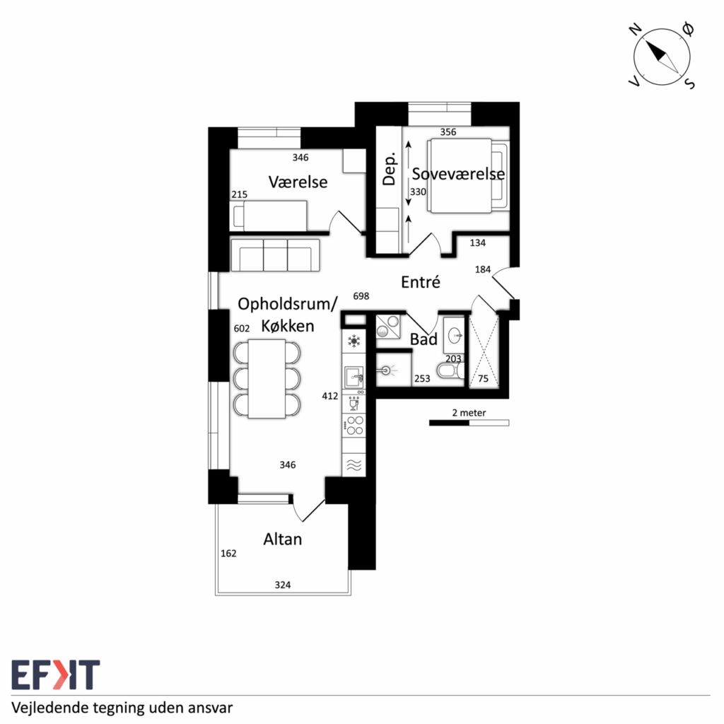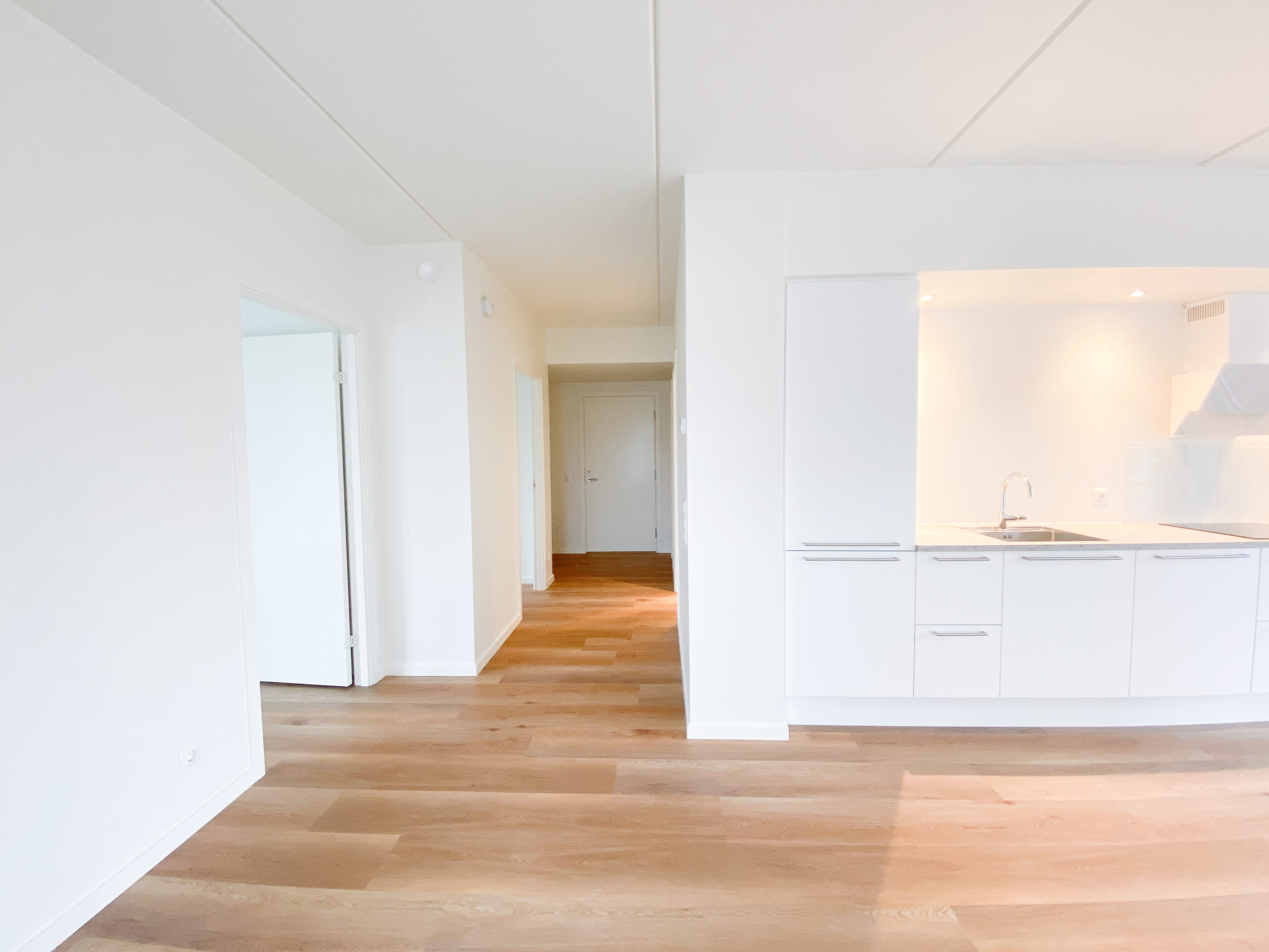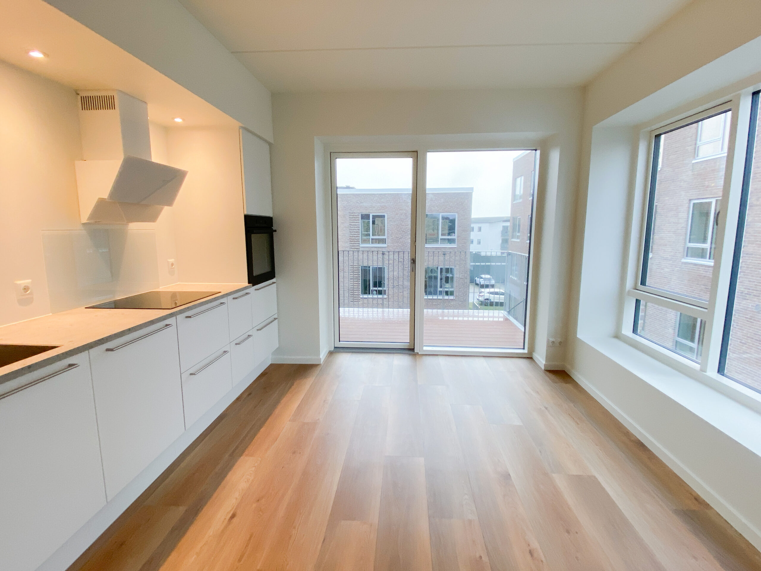 Denne lyse og velindrettede lejlighed byder på et åbent og indbydende køkken-alrum med udgang til en privat sydvendt altan, der giver masser af lys og luft. Det stilfulde Svane-køkken er komplet med en moderne hvidevarepakke, herunder induktionskogeplade, pyrolyseovn, køle-/fryseskab, opvaskemaskine, vaskemaskine og tørretumbler. Lejligheden rummer desuden to værelser og et lækkert badeværelse, og er udstyret med moderne kvalitetsmaterialer som akustikgulve og gulvvarme, hvilket sikrer en komfortabel og rolig atmosfære. Mellem de fire bygninger findes et hyggeligt gårdmiljø, der er perfekt til ophold og socialt samvær med naboerne. Der er mulighed for parkering, og alle lejligheder har adgang til et depotrum.