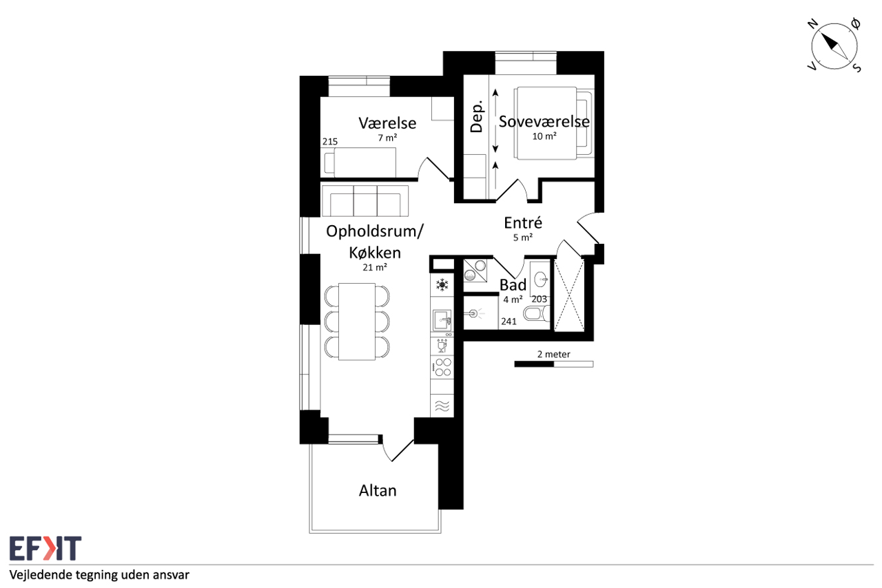 Denne lyse og velindrettede lejlighed byder på et åbent og indbydende køkken-alrum med udgang til en privat sydvendt altan, der giver masser af lys og luft. Det stilfulde Svane-køkken er komplet med en moderne hvidevarepakke, herunder induktionskogeplade, pyrolyseovn, køle-/fryseskab, opvaskemaskine, vaskemaskine og tørretumbler. Lejligheden rummer desuden to værelser og et lækkert badeværelse, og er udstyret med moderne kvalitetsmaterialer som akustikgulve og gulvvarme, hvilket sikrer en komfortabel og rolig atmosfære. Mellem de fire bygninger findes et hyggeligt gårdmiljø, der er perfekt til ophold og socialt samvær med naboerne. Der er mulighed for parkering, og alle lejligheder har adgang til et depotrum.