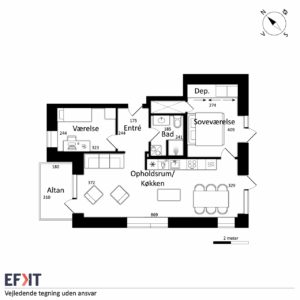 Denne lyse og velindrettede lejlighed byder på et åbent og indbydende køkken-alrum med udgang til en privat vestvendt altan, der giver masser af lys og luft. Det stilfulde Svane-køkken er komplet med en moderne hvidevarepakke, herunder induktionskogeplade, pyrolyseovn, køle-/fryseskab, opvaskemaskine, vaskemaskine og tørretumbler. Lejligheden rummer desuden to værelser og et lækkert badeværelse, og er udstyret med moderne kvalitetsmaterialer som akustikgulve og gulvvarme, hvilket sikrer en komfortabel og rolig atmosfære. Mellem de fire bygninger findes et hyggeligt gårdmiljø, der er perfekt til ophold og socialt samvær med naboerne. Der er mulighed for parkering, og alle lejligheder har adgang til et depotrum.