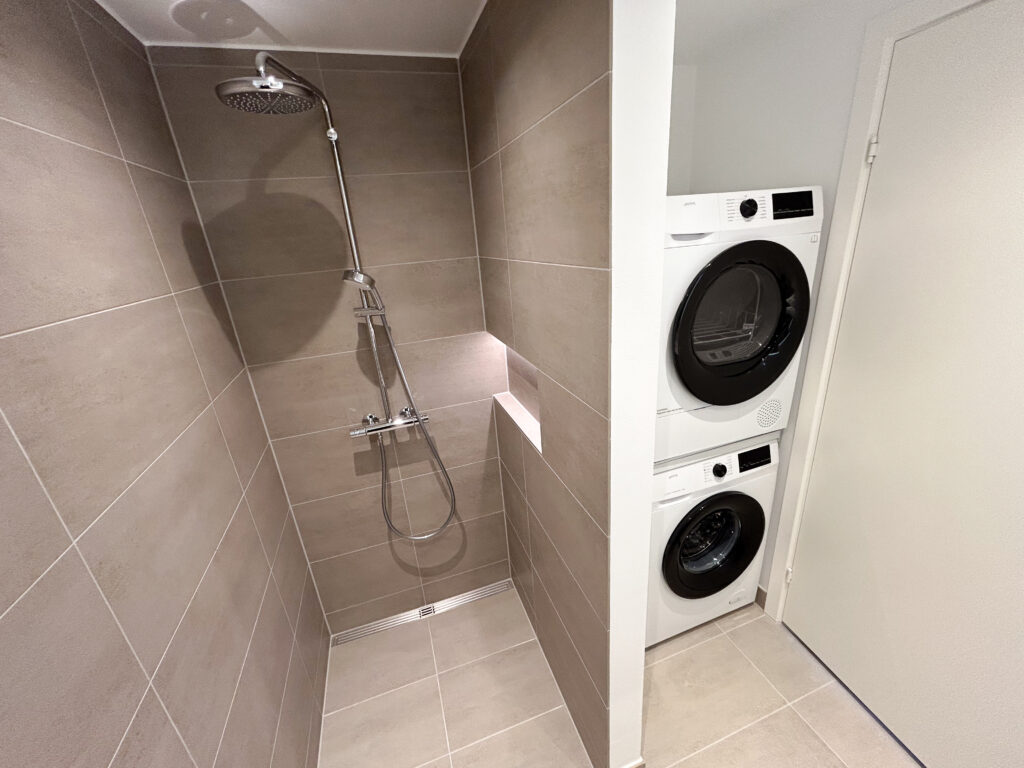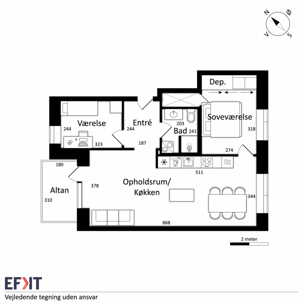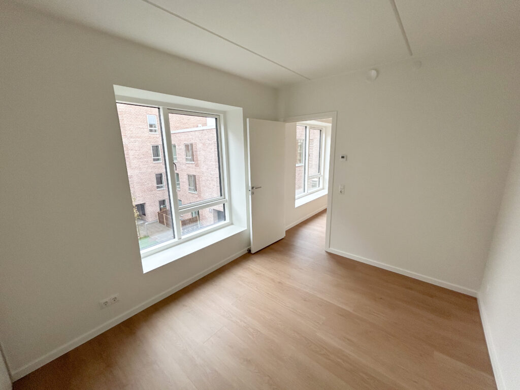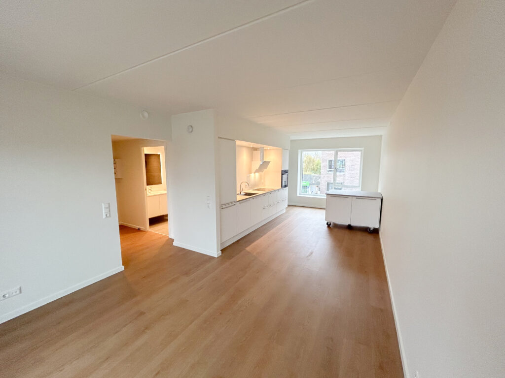 Denne lyse og velindrettede lejlighed byder på et åbent og indbydende køkken-alrum med udgang til en privat vestvendt altan, der giver masser af lys og luft. Det stilfulde Svane-køkken er komplet med en moderne hvidevarepakke, herunder induktionskogeplade, pyrolyseovn, køle-/fryseskab, opvaskemaskine, vaskemaskine og tørretumbler. Lejligheden rummer desuden to værelser og et lækkert badeværelse, og er udstyret med moderne kvalitetsmaterialer som akustikgulve og gulvvarme, hvilket sikrer en komfortabel og rolig atmosfære. Mellem de fire bygninger findes et hyggeligt gårdmiljø, der er perfekt til ophold og socialt samvær med naboerne. Der er mulighed for parkering, og alle lejligheder har adgang til et depotrum.