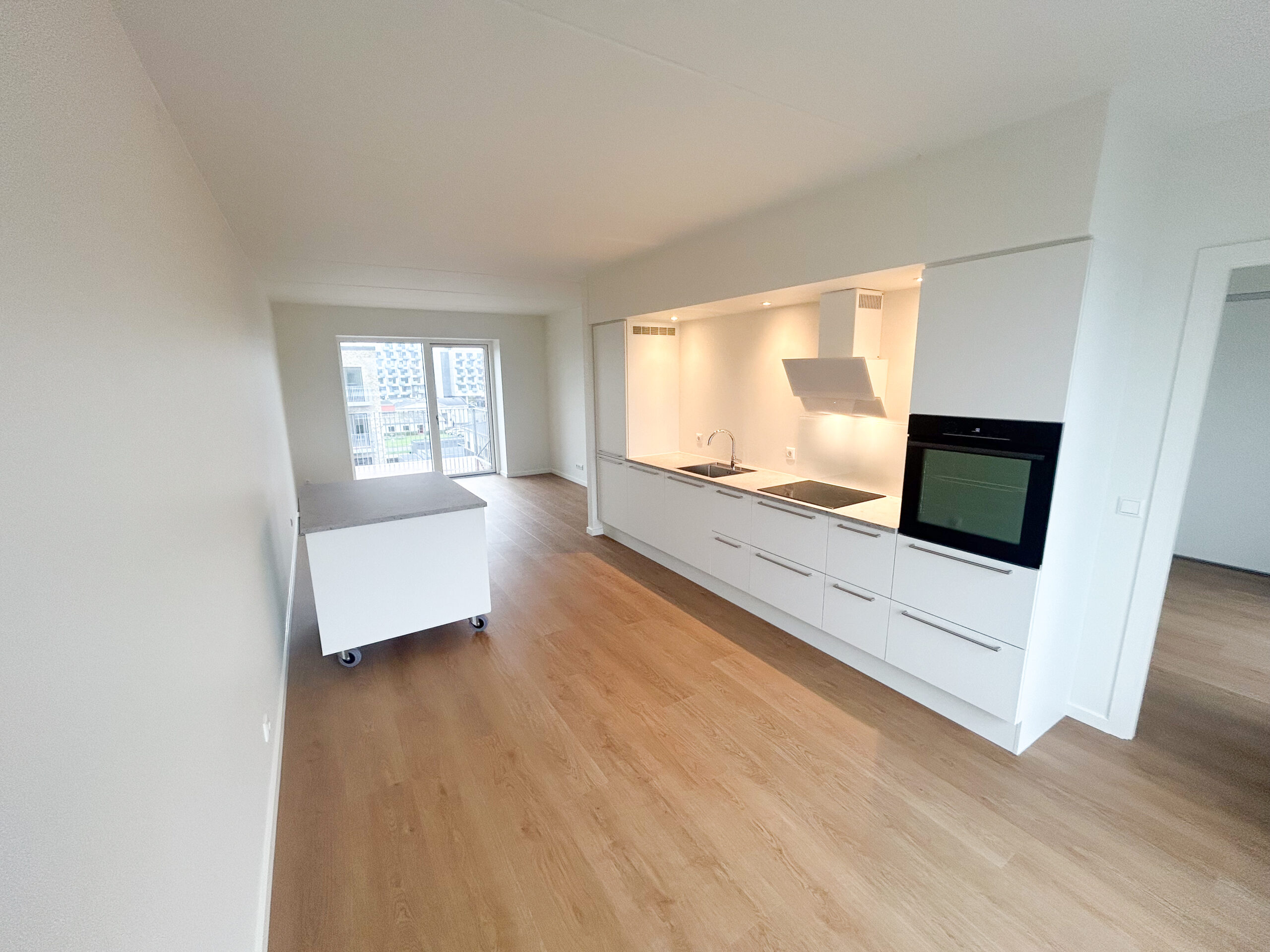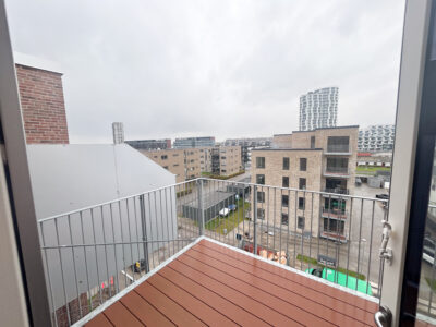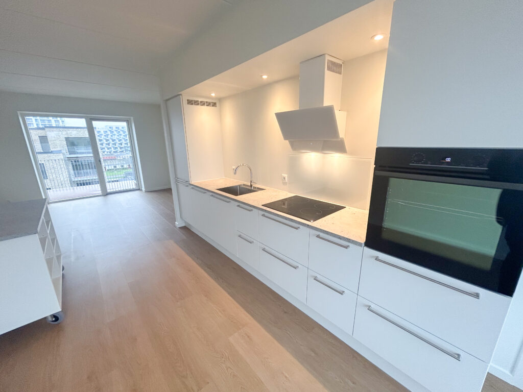 Denne lyse og velindrettede lejlighed byder på et åbent og indbydende køkken-alrum med udgang til en privat vestvendt altan, der giver masser af lys og luft. Det stilfulde Svane-køkken er komplet med en moderne hvidevarepakke, herunder induktionskogeplade, pyrolyseovn, køle-/fryseskab, opvaskemaskine, vaskemaskine og tørretumbler. Lejligheden rummer desuden to værelser og et lækkert badeværelse, og er udstyret med moderne kvalitetsmaterialer som akustikgulve og gulvvarme, hvilket sikrer en komfortabel og rolig atmosfære. Mellem de fire bygninger findes et hyggeligt gårdmiljø, der er perfekt til ophold og socialt samvær med naboerne. Der er mulighed for parkering, og alle lejligheder har adgang til et depotrum.