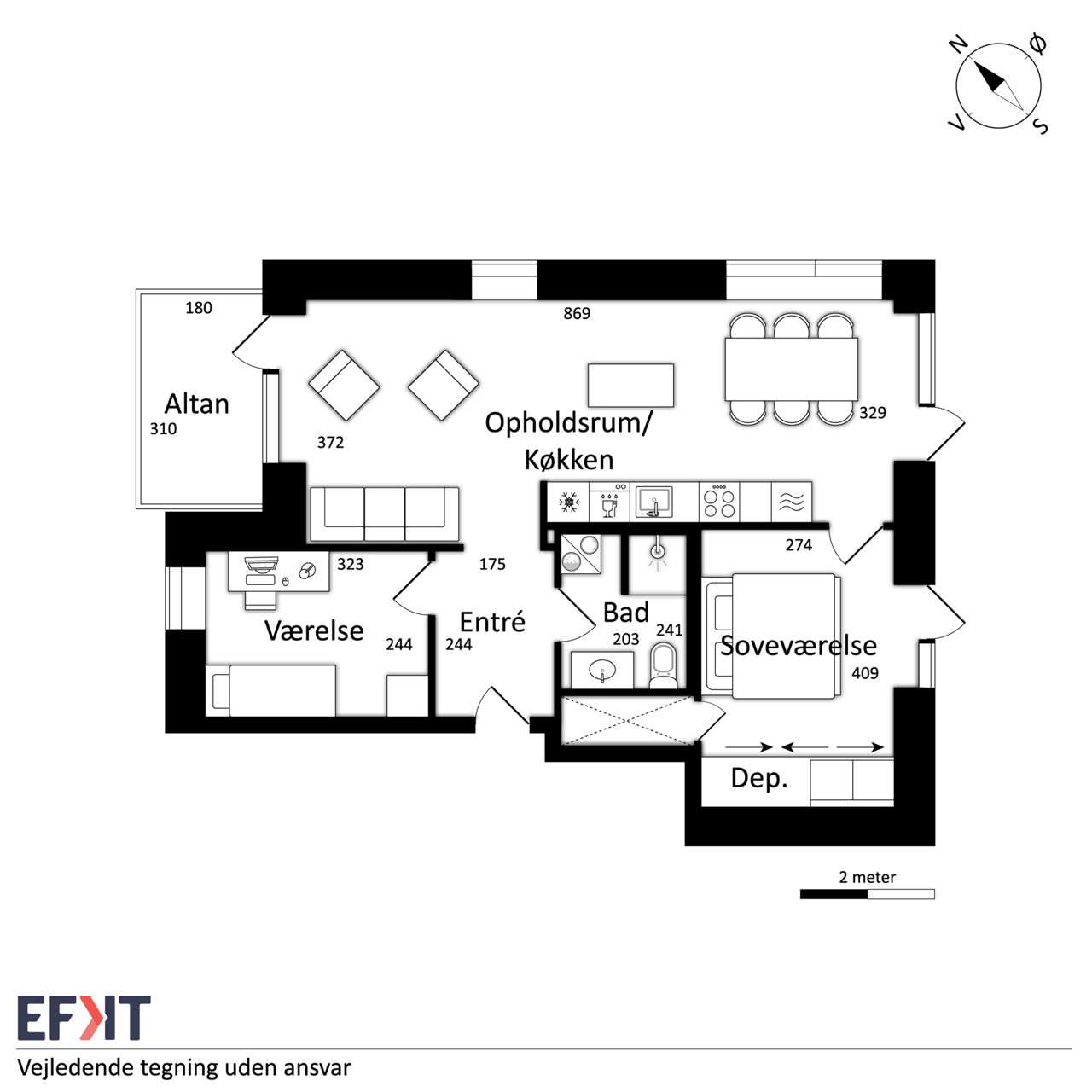 Denne lyse og velindrettede lejlighed byder på et åbent og indbydende køkken-alrum med udgang til en privat vestvendt altan, der giver masser af lys og luft. Det stilfulde Svane-køkken er komplet med en moderne hvidevarepakke, herunder induktionskogeplade, pyrolyseovn, køle-/fryseskab, opvaskemaskine, vaskemaskine og tørretumbler. Lejligheden rummer desuden to værelser og et lækkert badeværelse, og er udstyret med moderne kvalitetsmaterialer som akustikgulve og gulvvarme, hvilket sikrer en komfortabel og rolig atmosfære. Mellem de fire bygninger findes et hyggeligt gårdmiljø, der er perfekt til ophold og socialt samvær med naboerne. Der er mulighed for parkering, og alle lejligheder har adgang til et depotrum.