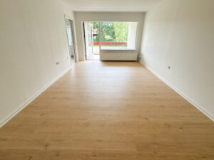 Lejligheden er gennemgående belagt med flotte laminattrægulve, der skaber en sammenhængende og indbydende atmosfære.