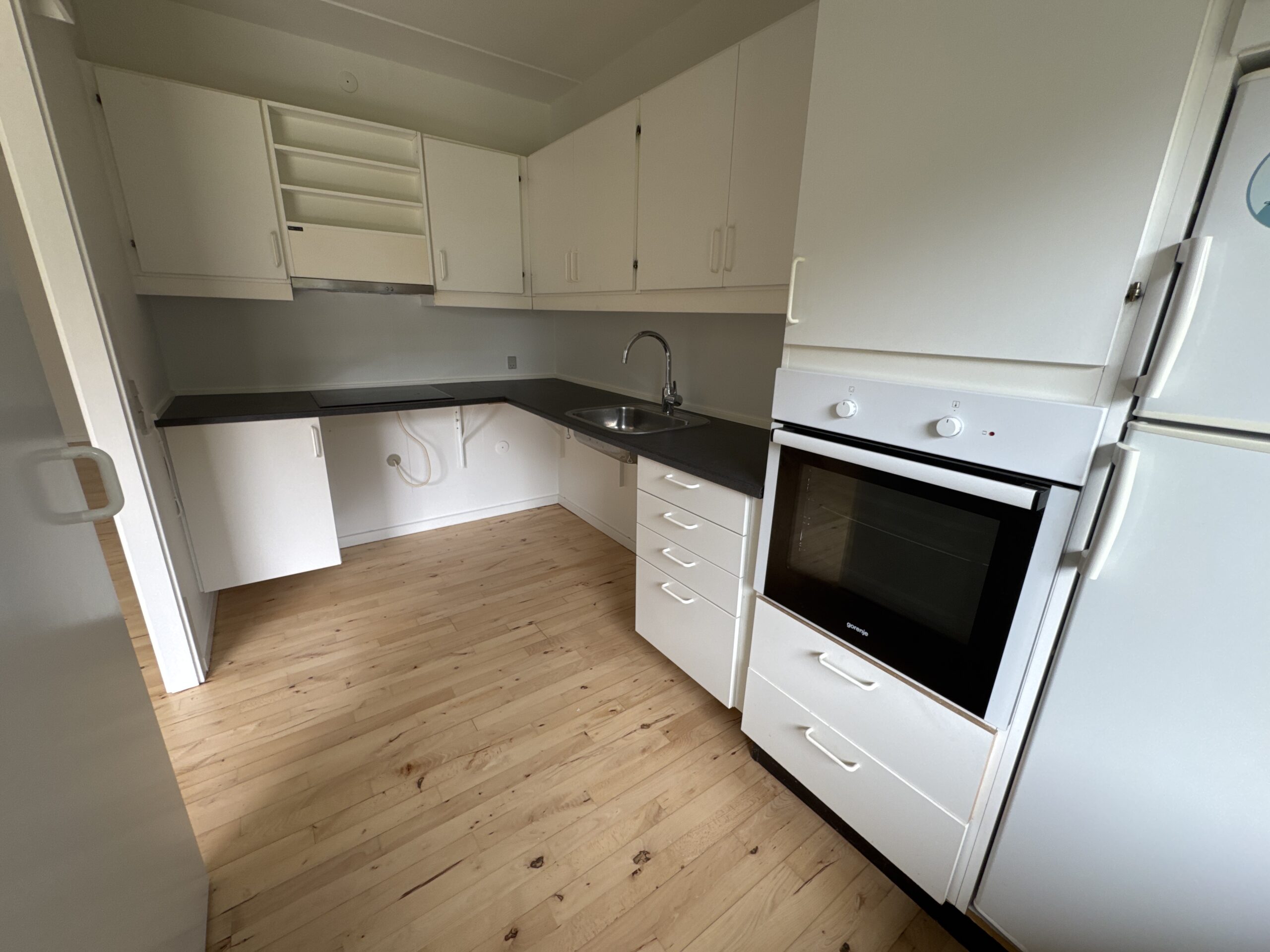Stuen fremstår lys og rummelig med sin rektangulære form, der gør den nem at indrette. Herfra er der direkte udgang til en stor og hyggelig altan – et skønt uderum til afslapning og hyggelige stunder. Køkkenet ligger i forlængelse af stuen og fremstår lyst med hvide elementer med gode opbevaringsmuligheder og mulighed for at installere en opvaskemaskine.